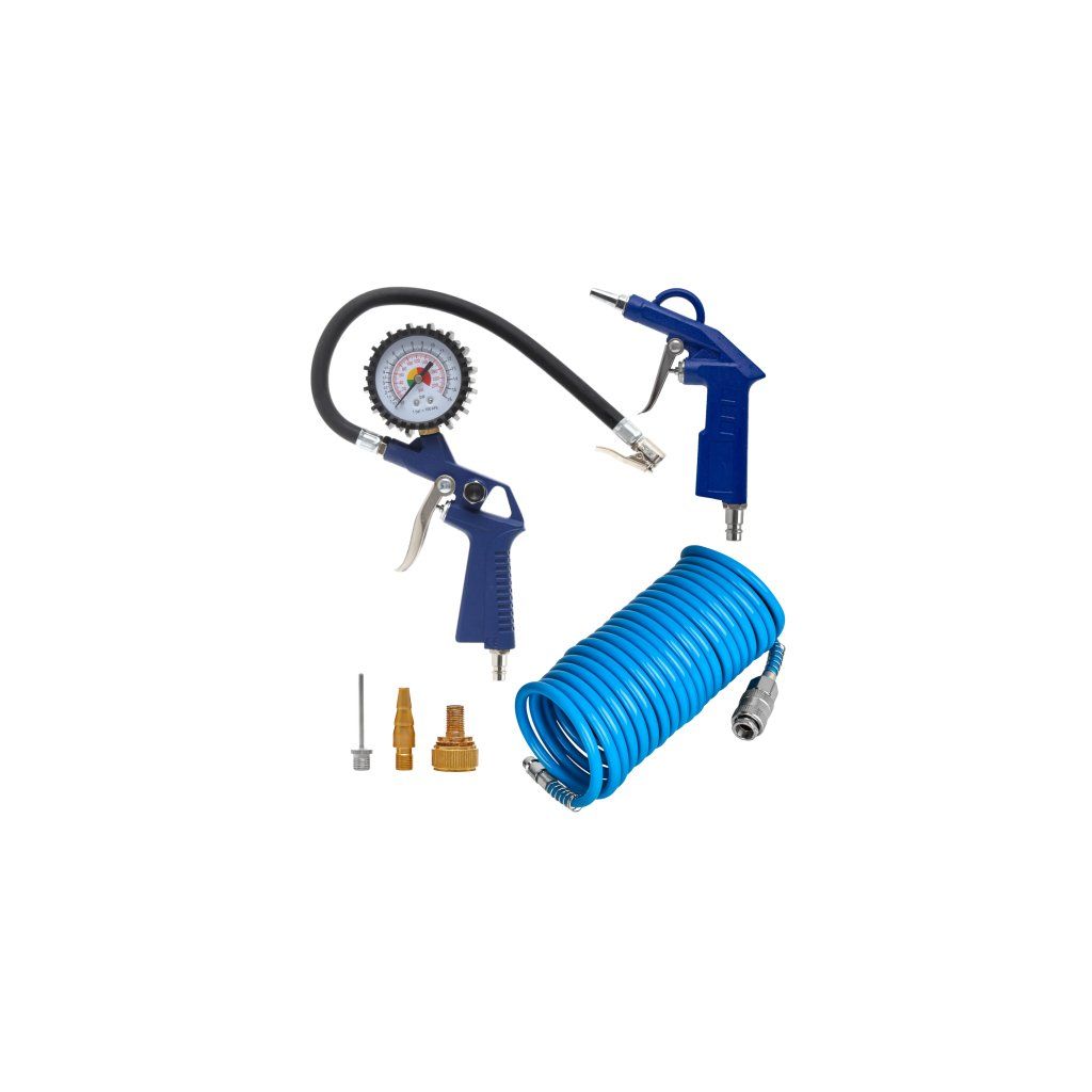 - 5m spirálová hadice: Umožňuje flexibilní propojení pneumatických nástrojů a prodloužení stávajících systémů.