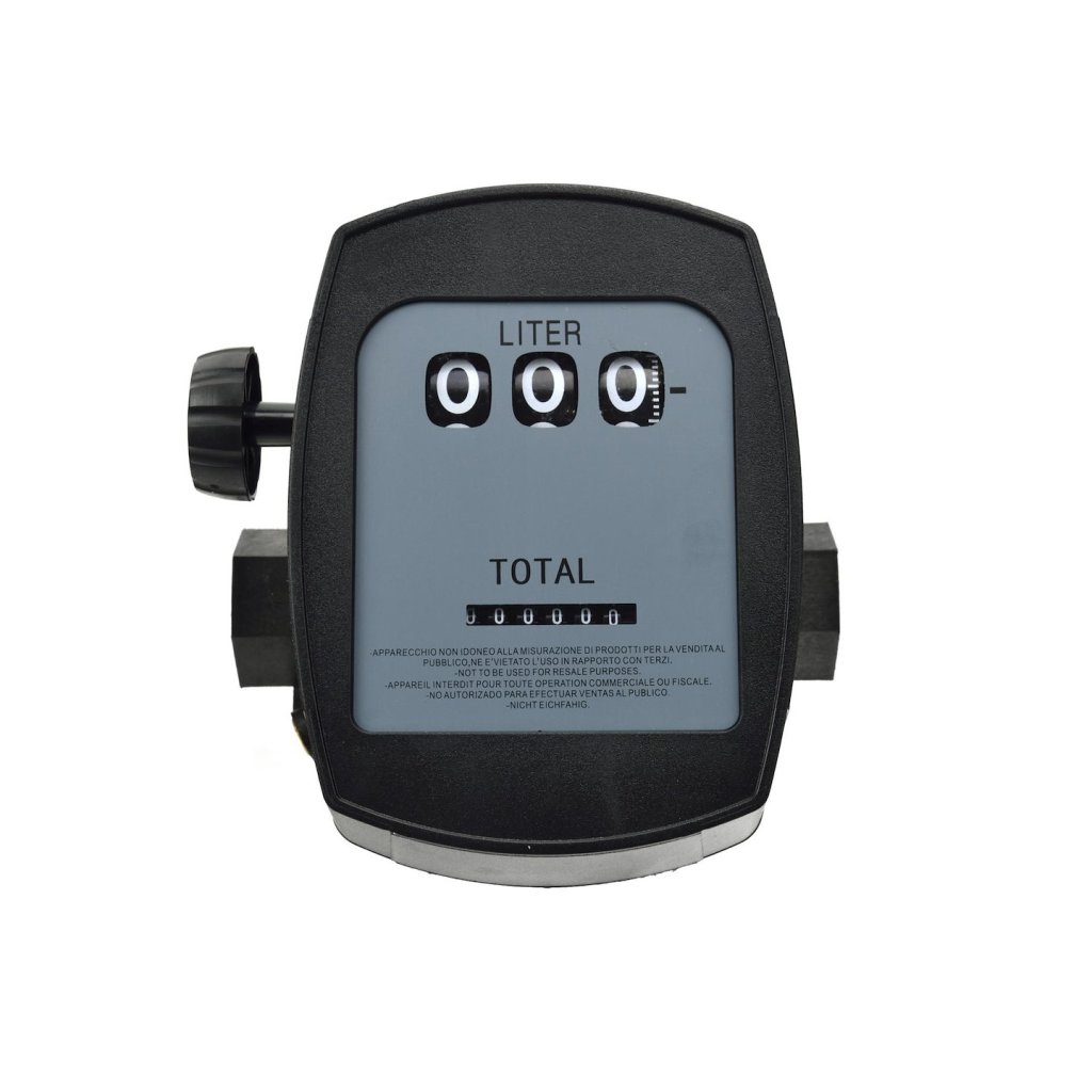 Průtokoměr, mechanický měřič elektrické pumpy mini CPN na 230V. Přizpůsobený pro měření průtoku paliva a oleje. Má dva měřiče a otočný knoflík pro rychlé vynulování.