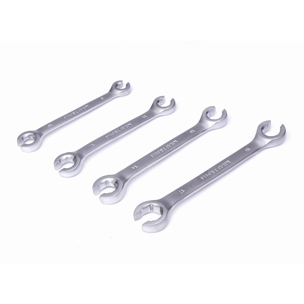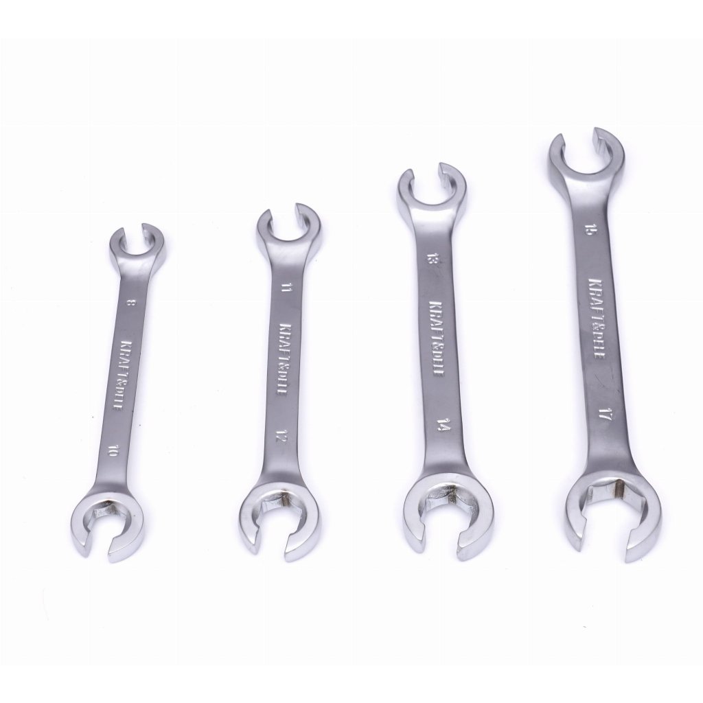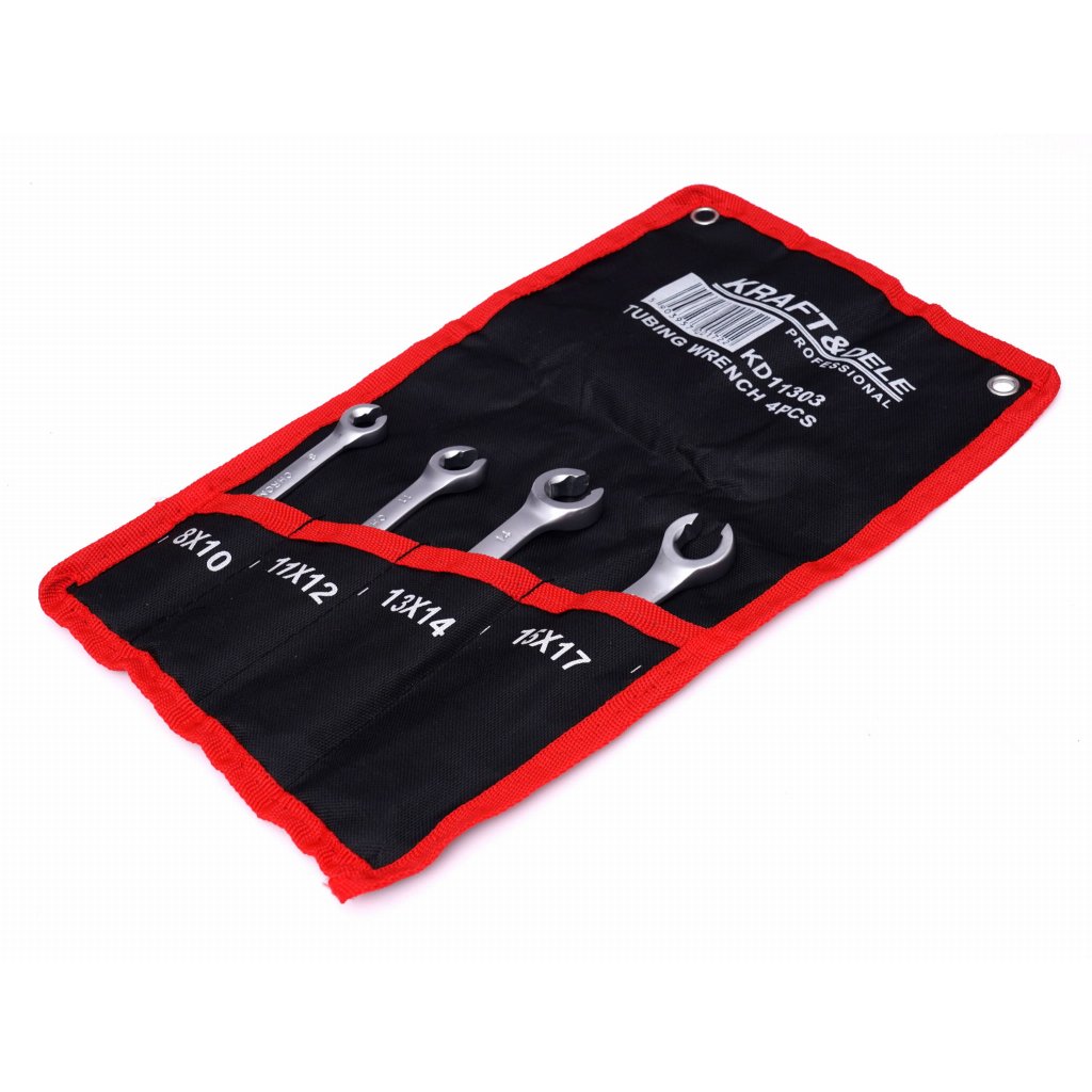 Použijte půlotvorenou sadu klíčů KD11303 pro náročné mechaniky a zajistěte dokonalý úchop bez poškození matic. Tyto klíče jsou vyrobené z chrom-vanadové oceli pro dlouhou životnost, mají přesně přizpůsobené čelisti a ergonomický úchop. S rozměry 8x10 mm, 11x12 mm, 13x14 mm, 15x17 mm zvládnete práci na brzdových, palivových a hydraulických vedeních snadno a rychle.