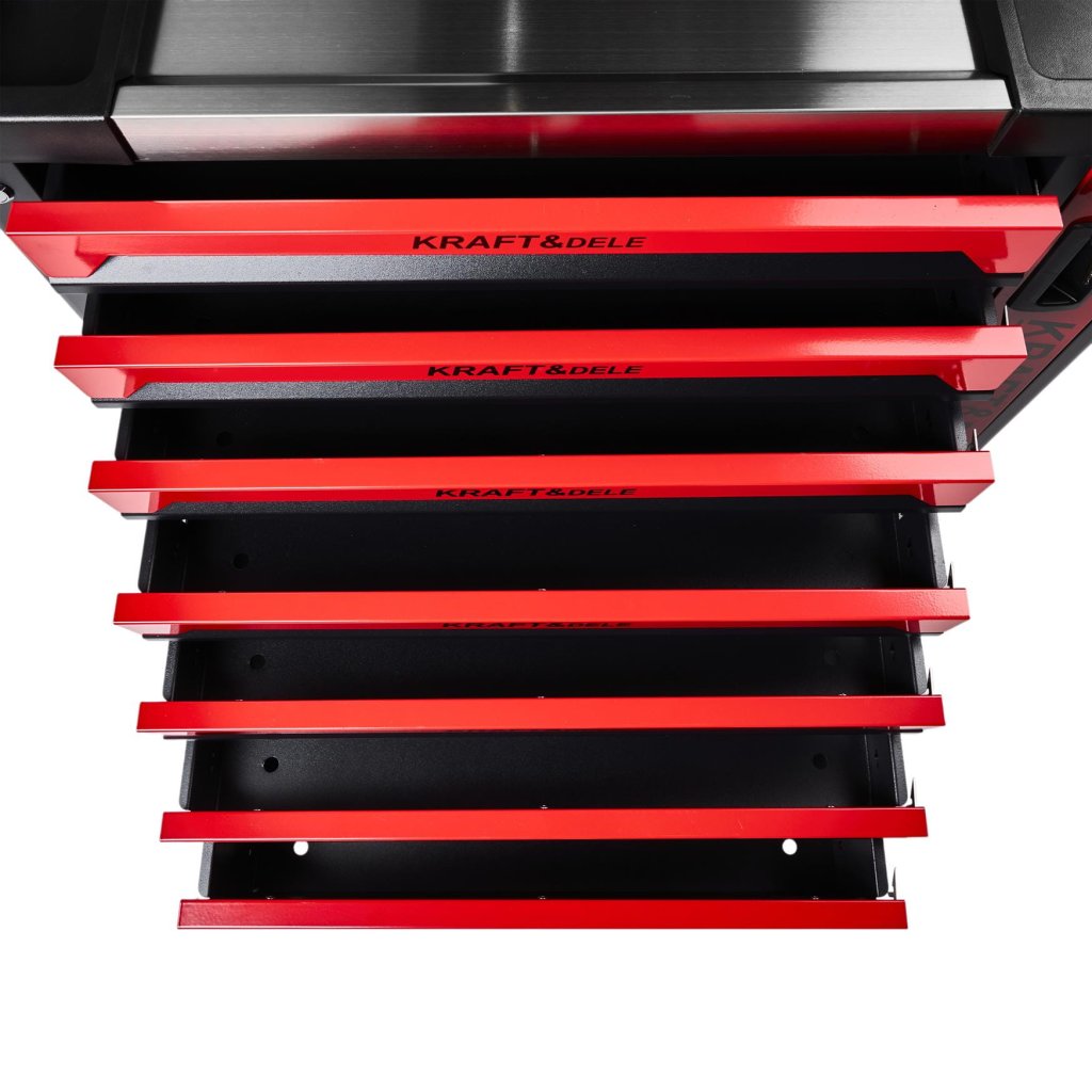 Potřebujete udržet pořádek v dílně? Tato PRÁZDNÁ SKŘÍŇ NA NÁŘADÍ KD1078 je tím pravým pomocníkem! Nabízí 9 šuplíků s hladkým výsuvem a bezpečnostní blokací. Dvě otočná kolečka s brzdou zajišťují snadný pohyb. Odolná pracovní plocha je imunní vůči chemikáliím, teplu a poškození. Využijte 12měsíční záruku a kvalitní servis přímo od výrobce.