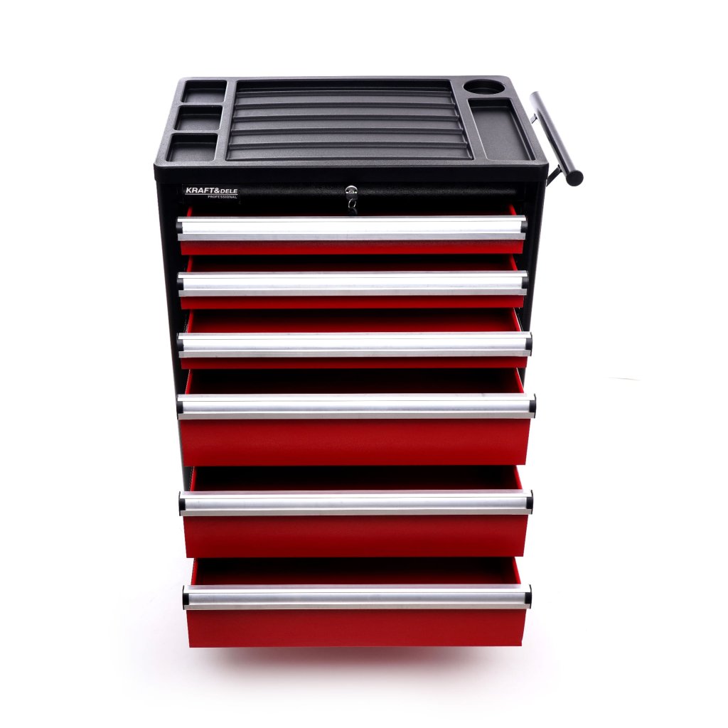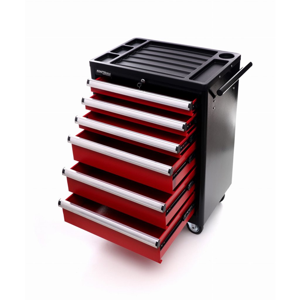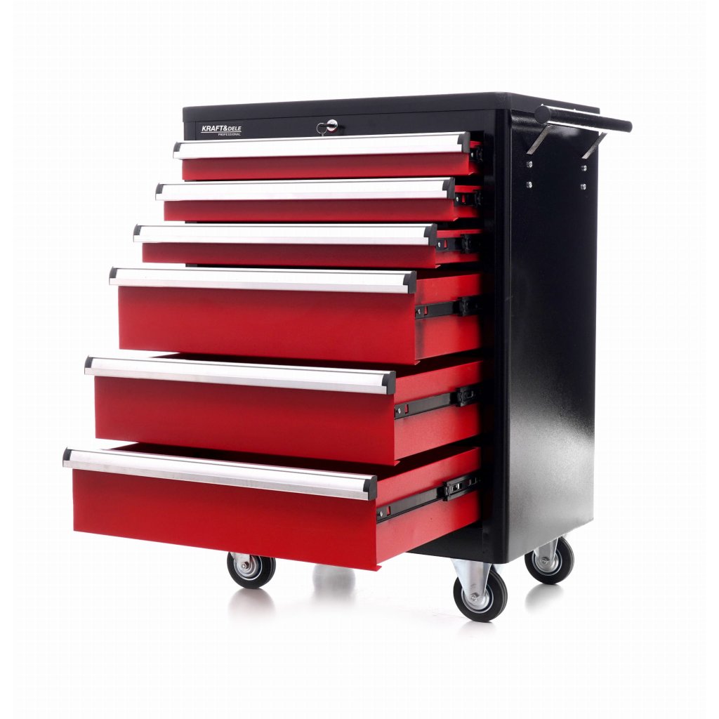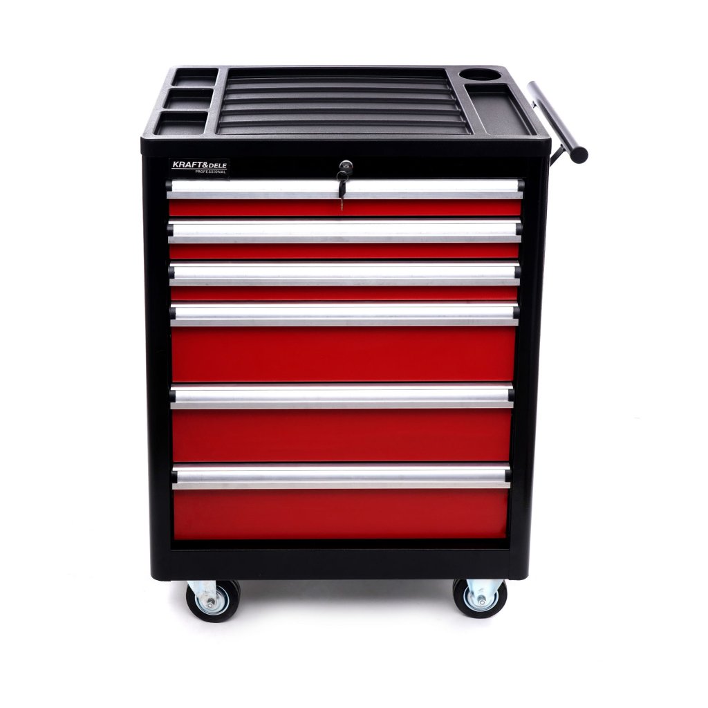 Potřebujete přehled ve vaší dílně? Prázdná skříň na nářadí KD370 je tím pravým řešením! Díky šesti zásuvkám budete mít všechny nástroje na dosah ruky. Snadná manipulace díky kolečkům s brzdami a zamykatelné zásuvky ochrání vaše cennosti. Vysoce kvalitní materiály a skvělá uživatelská podpora! Nakupujte u nás a užijte si 12 měsíců záruky.