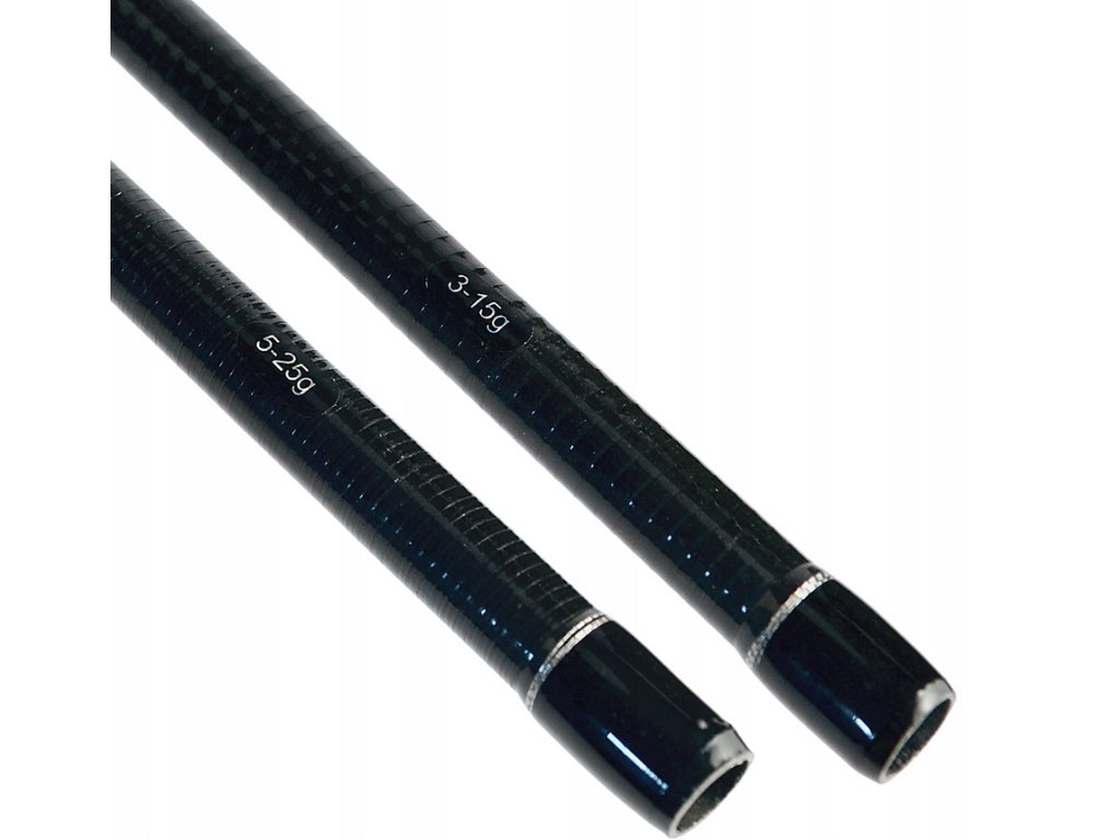 Spojili jsme dvě varianty v jednom prutu: 3-15 g pro precizní techniky a 5-25 g pro silnější nástrahy. Prut dlouhý 2,4 m pokrývá široké spektrum přívlače – od menších ryb až po větší dravce.