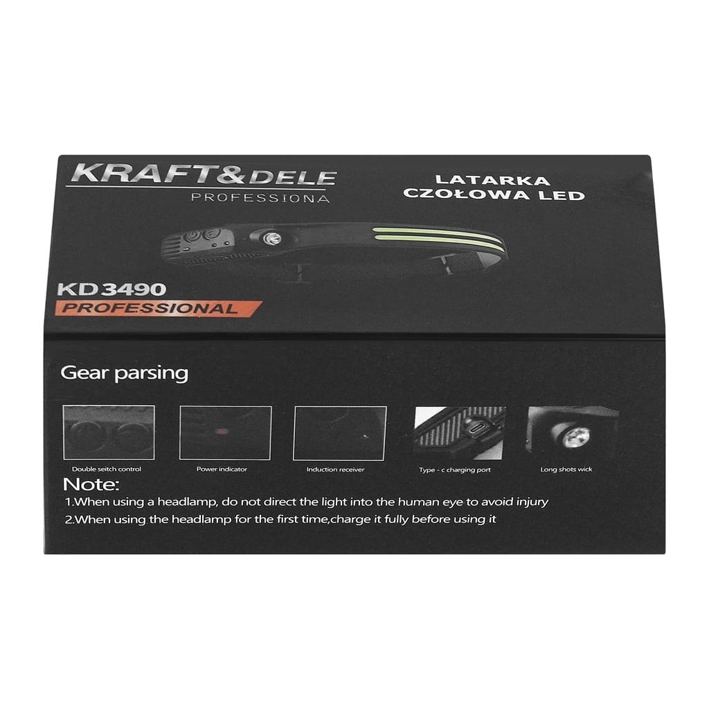 Profesionální led čelovka KD3490 s pohybovým senzorem a usb-c nabíjením