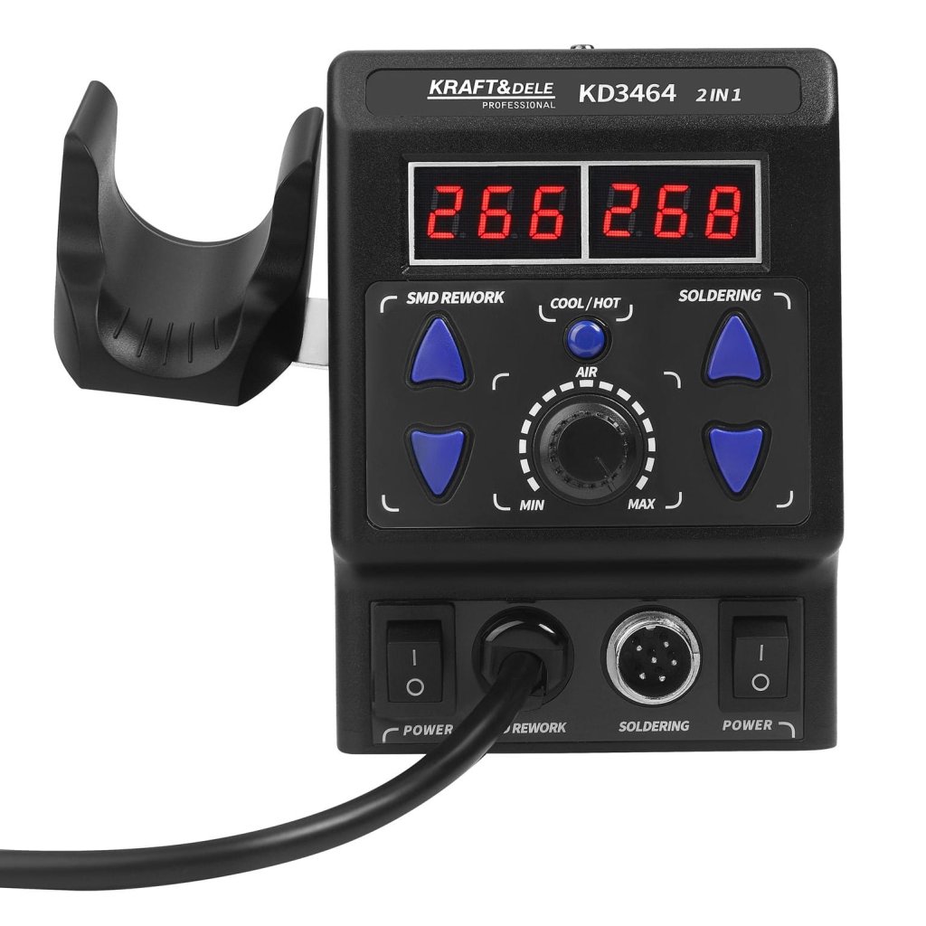 - Wyświetlacz Numeryczny LED Obsah balení: ✅ Spawarka do plastiku KD3464 ✅ Lutownica ✅ Podstawka pod lutownicę ✅ Zamienne groty o różnym kształcie i zastosowaniu ✅ Gąbka do czyszczenia grotu lutownicy ✅ Nakładki na pistolet powietrza ✅ Topnik Flux ✅ Strzykawka do topnika ✅ Odsysarka do cyny ✅ Mata/podkładka do lutowania ✅ Návod k použití w języku polskim ✅ Záruka 12 miesięcy
