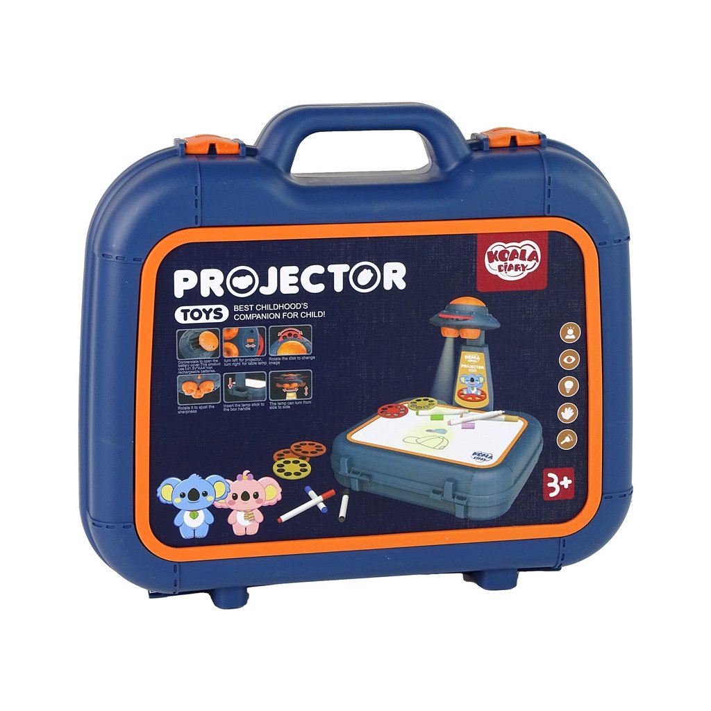 Projektor v kufříku Modré obrázky Objevte jedinečnou sadu projektoru v tmavě modré kufříku, která vaše dítě přenese do kouzelného světa kreativity! Kufřík plný kouzla obsahuje návod a roztomilé obrázky dvou sladkých koalů v různých barvách