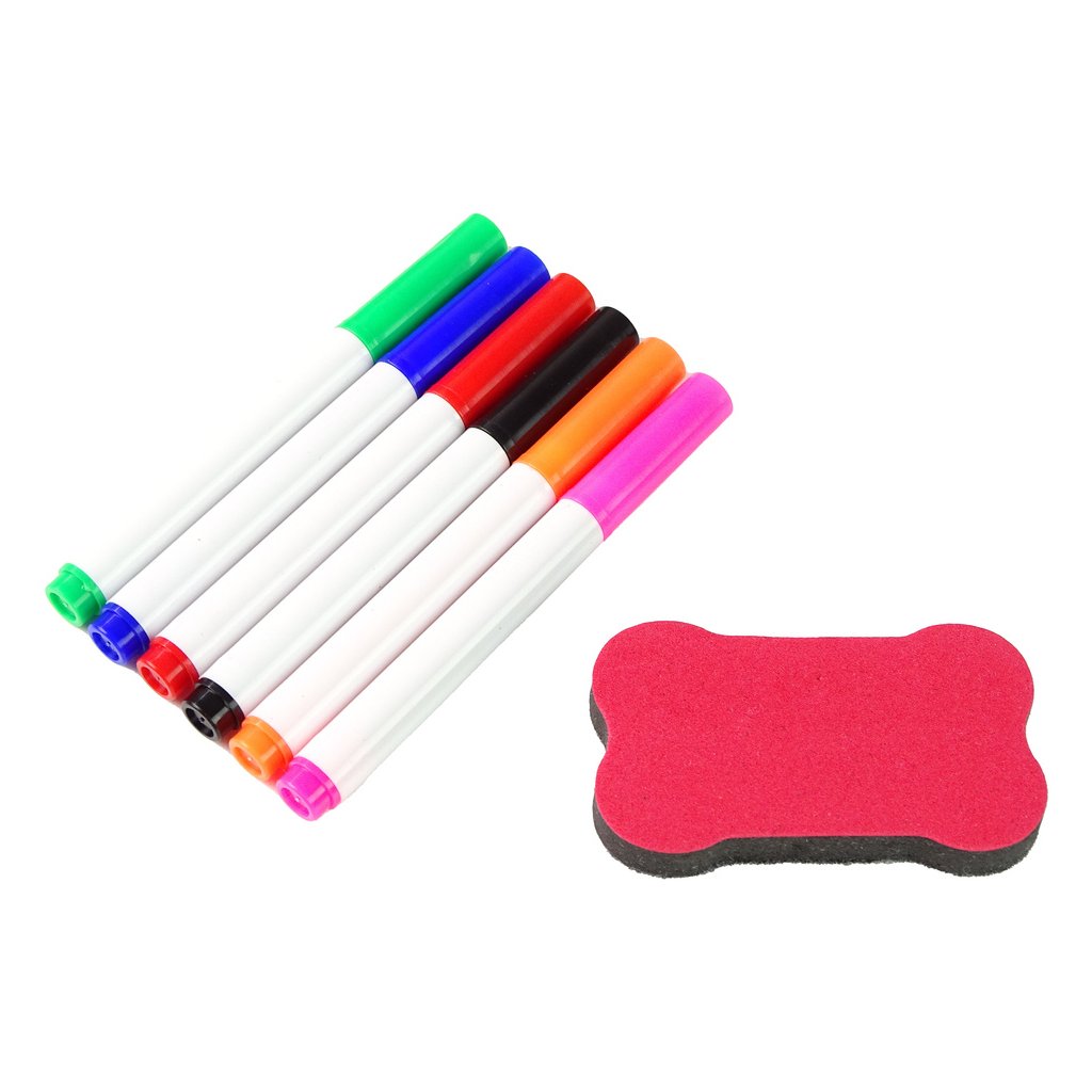 - V sadě najdete také 6 barevných fixů a houbičku na mazání, díky kterým vaše dítě může vyjádřit svou fantazii na bílém pozadí