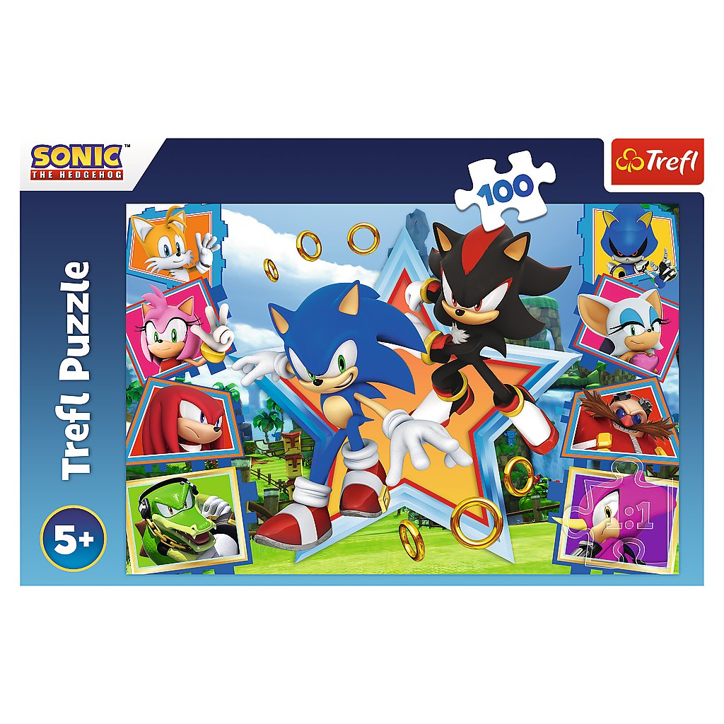Puzzle - "100" - Poznej Sonica Trefl 16465 je sada puzzle skládající se ze 100 dílků, navržená pro všechny fanoušky a fanynky Sonica.