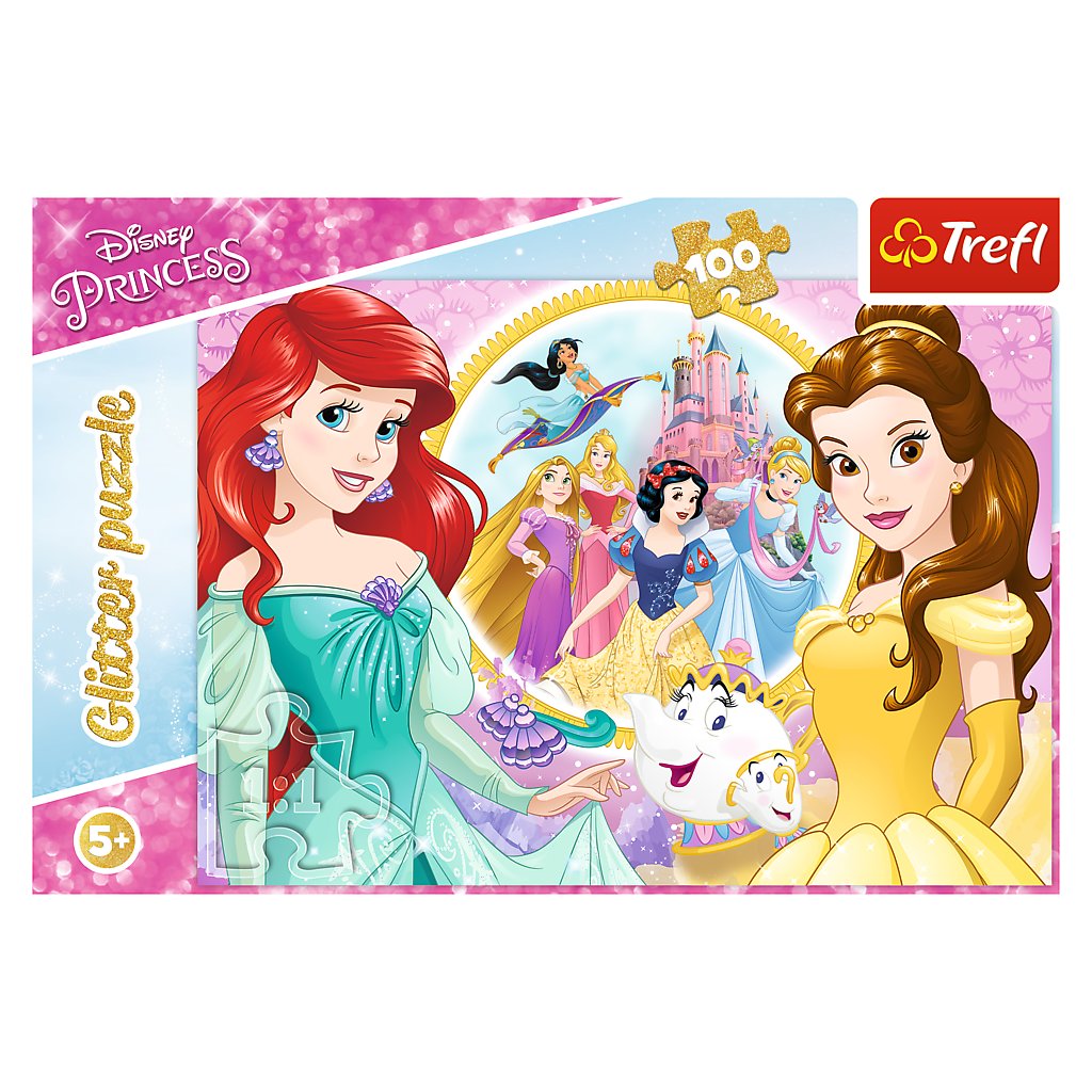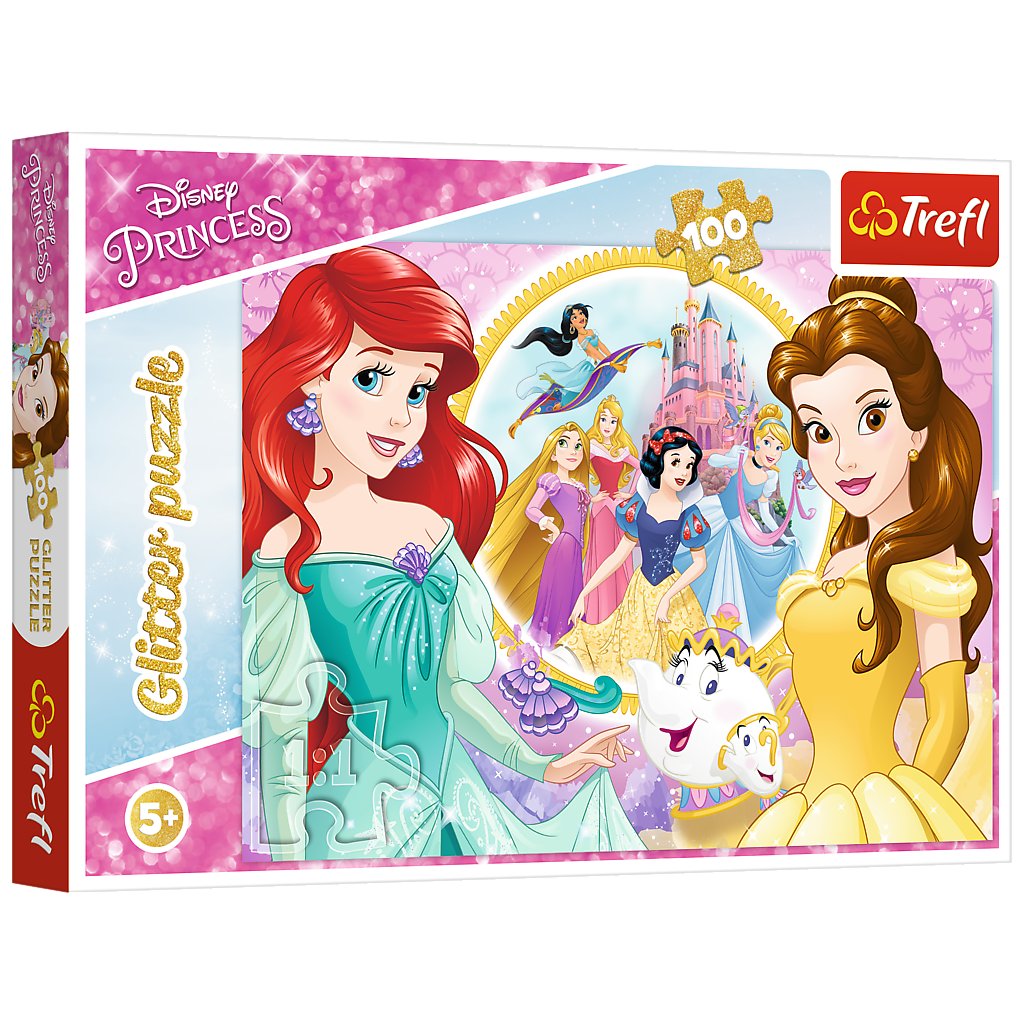 Puzzle - 100 třpytivé - Vzpomínky Belly a Arielky / Disney Princezna Trefl 14819 Vzpomínky Belly a Arielky jsou puzzle skládající se ze 100 dílků, navržené speciálně s ohledem na malé fanoušky disneyovských princezen.