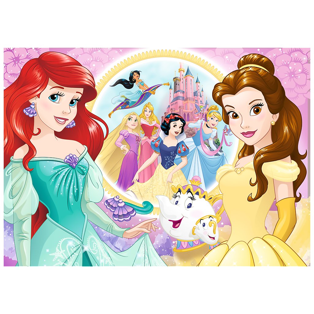 Vzpomínky Belly a Arielky / Disney Princezna Trefl 14819 Vzpomínky Belly a Arielky jsou puzzle skládající se ze 100 dílků, navržené speciálně s ohledem na malé fanoušky disneyovských princezen Skládačka je pokryta jemnými zlatými třpytkami, které zajišťují, že jak obal, tak jednotlivé dílky se nádherně třpytí a vytvářejí úchvatný dojem