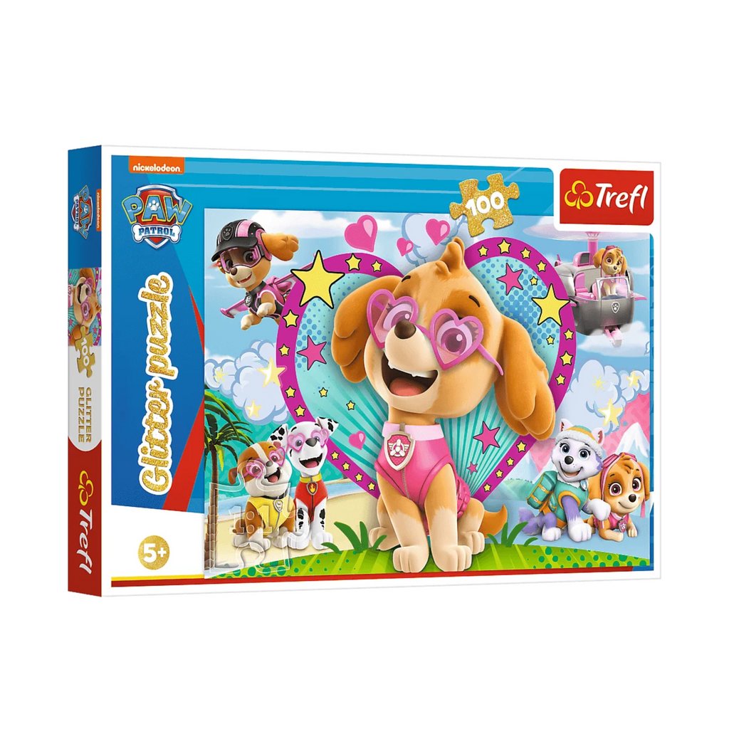 - Puzzle 100 dílků V Záři Skye Trefl 14818 je sada puzzlů, které obsahují 100 dílků, navržená speciálně pro malé fanoušky animovaného seriálu "Tlapková patrola"