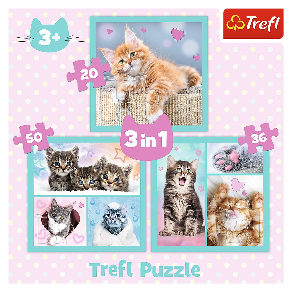 Sladká zvířátka Trefl 34862 přináší trojnásobnou radost ze skládání! Tato sada obsahuje tři různé sestavy, které zobrazují roztomilé malé koťátka