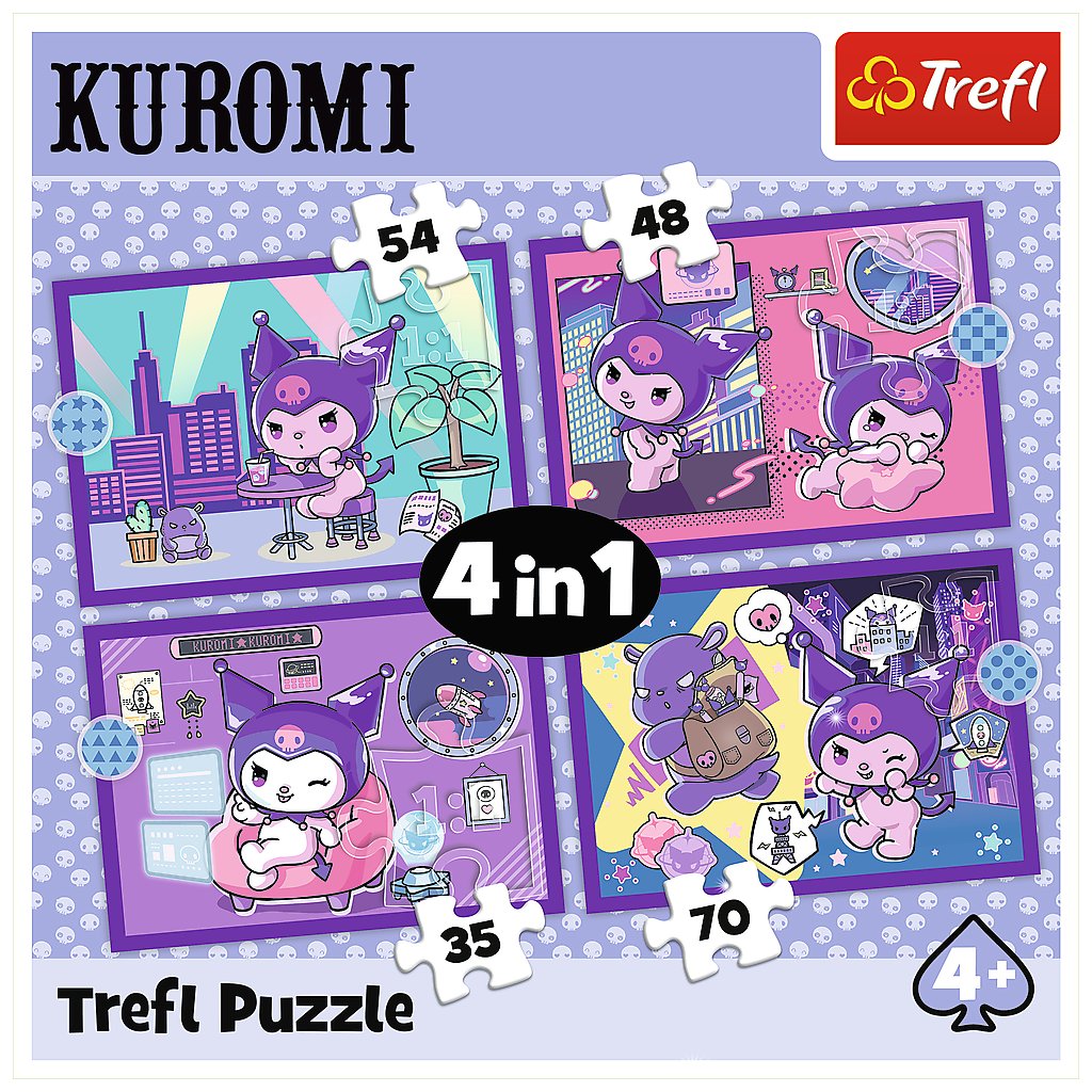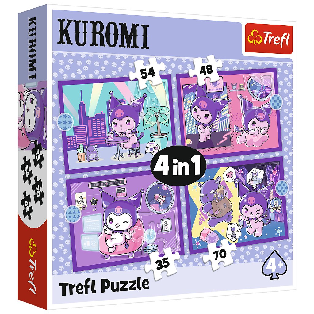 Puzzle 4v1 Den Kuromi - Hello Kitty Trefl 34676 je sada čtyř samostatných skládaček, navržených speciálně pro malé fanoušky dobrodružství hrdinů z pohádky Kuromi. Po složení těchto puzzle vzniknou čtyři obrázky, z nichž největší má rozměry 285 x 205 mm. Díky různému počtu dílků je tato hra vhodná jak pro mladší, tak i pro starší děti.