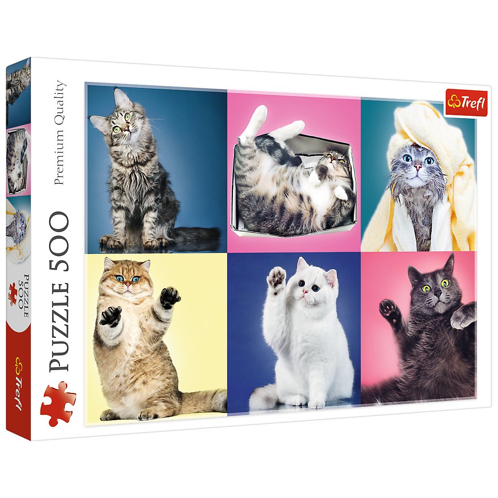 Puzzle 500 dílků Koťátka od značky Trefl jsou výjimečná skládačka s rozmanitými obrázky sladkých koček různých plemen na barevných pozadích.