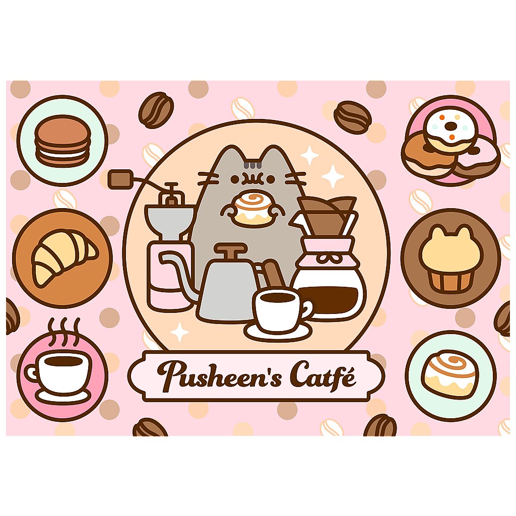 - Tento nádherný puzzle o 500 dílcích zobrazuje roztomilou kočku Pusheen obklopenou voňavou kávou a lákavými sladkostmi