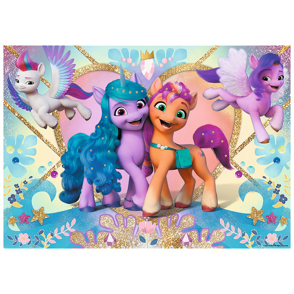 Puzzle Třpytivé 100 ks My Little Pony jsou speciálně navrženy pro každého fanouška Kucyků Pony Tato skládanka obsahuje 100 dílků a je pokryta jemným zlatým třpytem, který zajišťuje, že jak obal, tak jednotlivé dílky nádherně jiskří a vytvářejí úžasný vizuální efekt