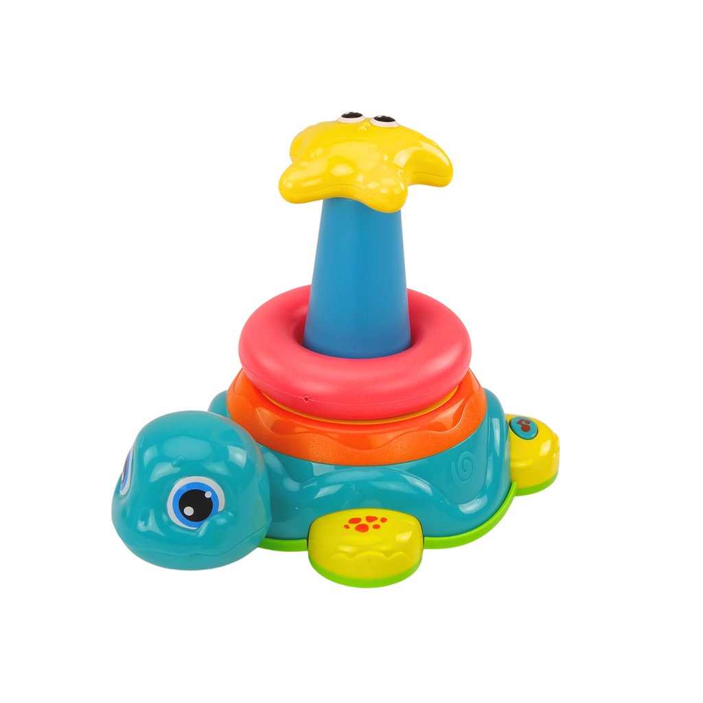 Celá hračka stojí na pevné základně ve tvaru pojíždějící želvy, která nejen vydává zvuky a svítí, ale také reaguje na překážky, což činí hru ještě dynamičtější a interaktivnější Na vrcholu pyramidy trůní žlutá hvězda, která dítě navíc motivuje k dosažení cíle