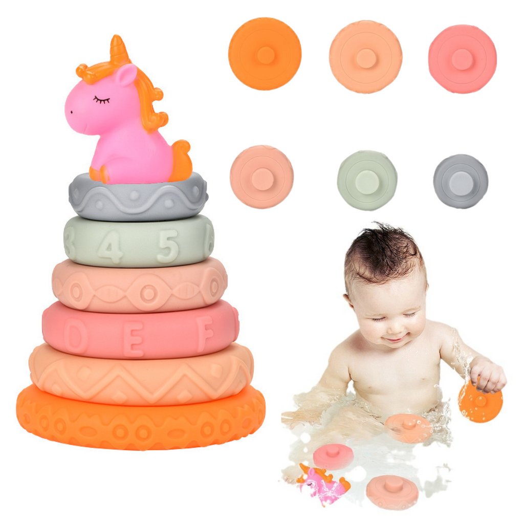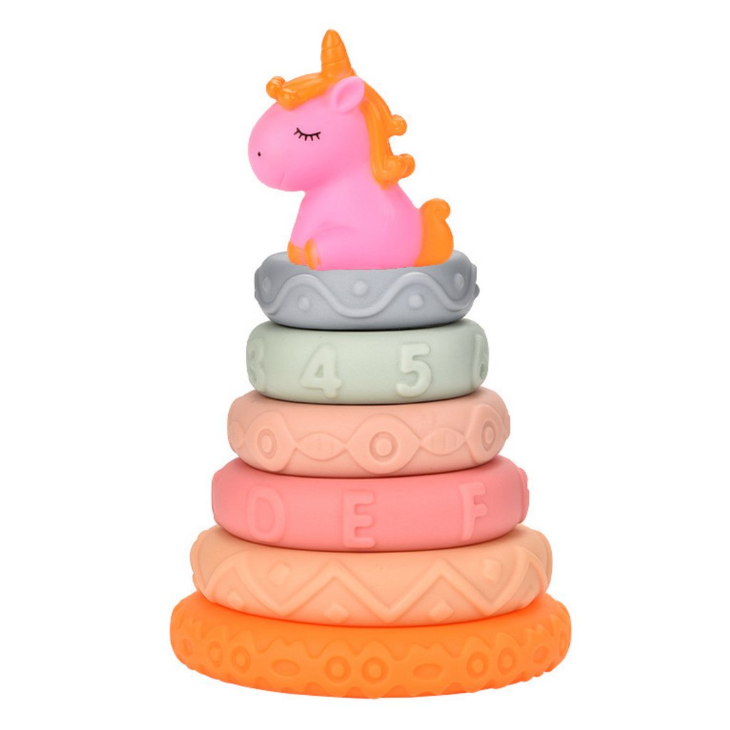 Pyramida Věž pro Kojence Gumové Měkké Kostky Jednorožec