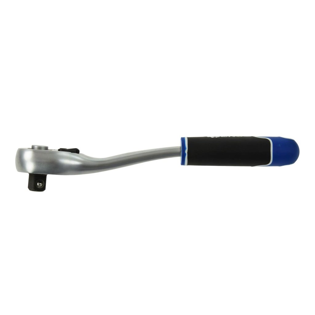 Profesionální ráčna 1/2" ohnutá, s ráčnovým mechanismem se 72 zuby. Její konstrukce z chrom-vanadové legované oceli zajišťuje dlouhou životnost a vysokou odolnost. Ergonomická rukojeť z dvoukomponentového protiskluzového materiálu zajišťuje pohodlí a bezpečnost při práci.
