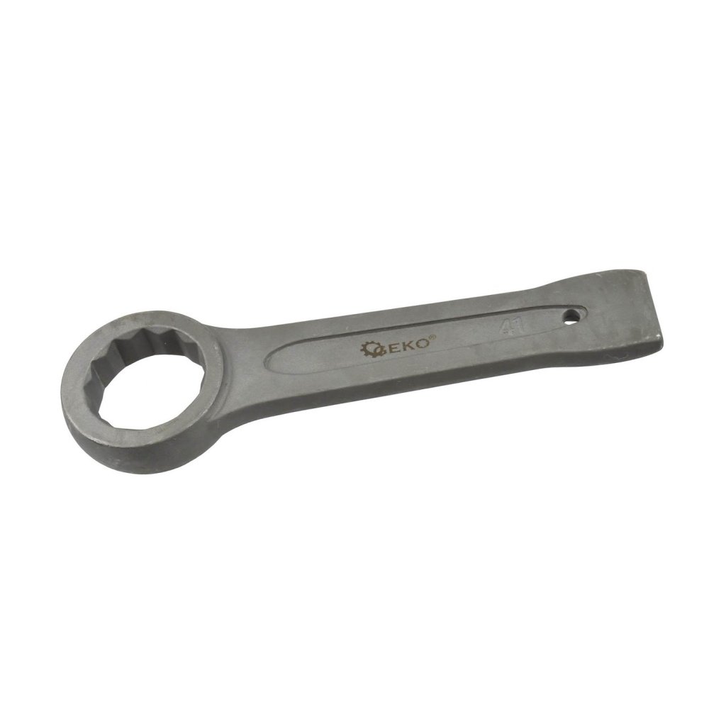 Očkový klíč na zatloukání určený k odšroubování pevně utažených nebo zaseknutých šroubů povýkoní úderů kladivem na konec rukojeti klíče.