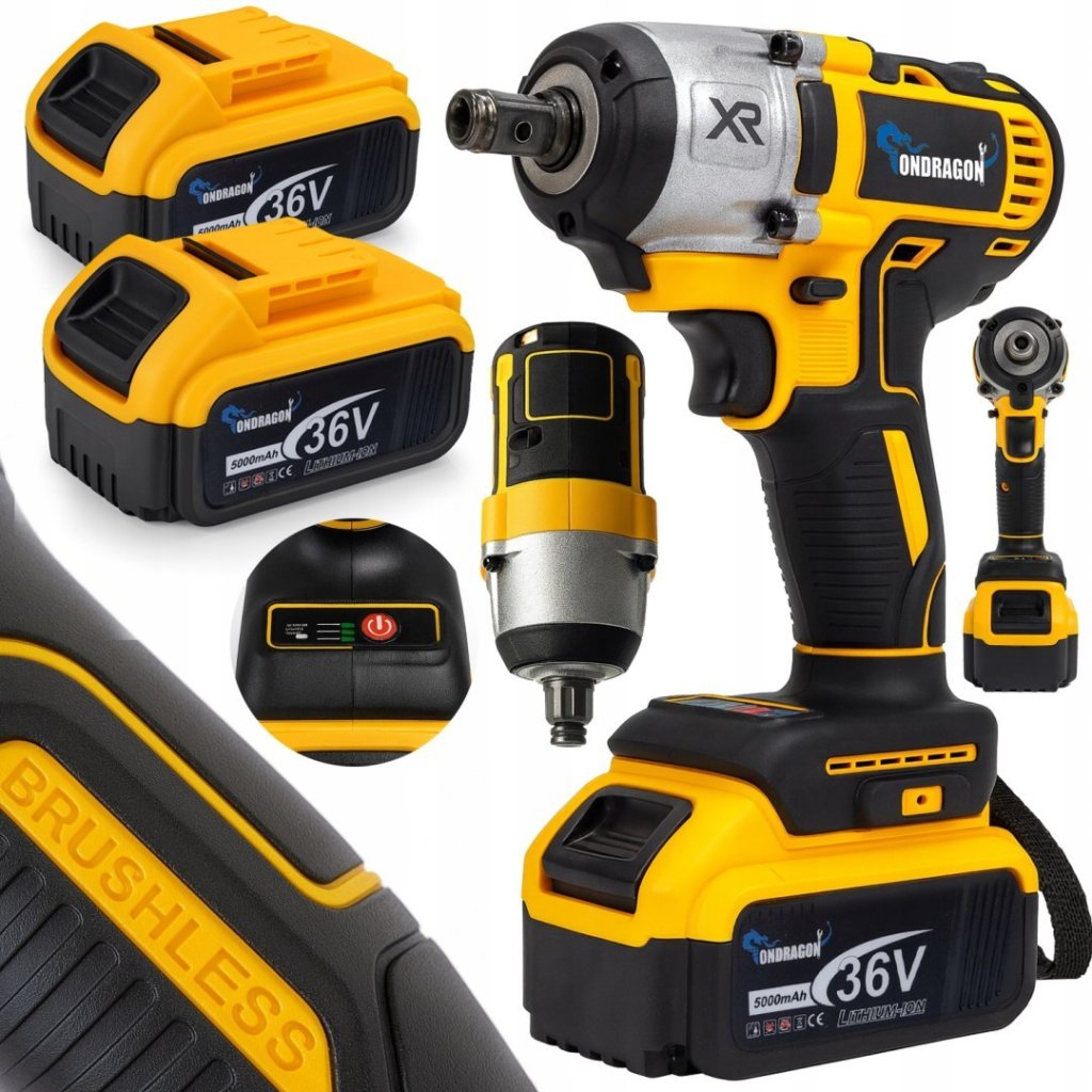 ⚡🔧 ONDRAGON 36 V rázový utahovák 1/2″ – 380 Nm, 2× 5 Ah aku