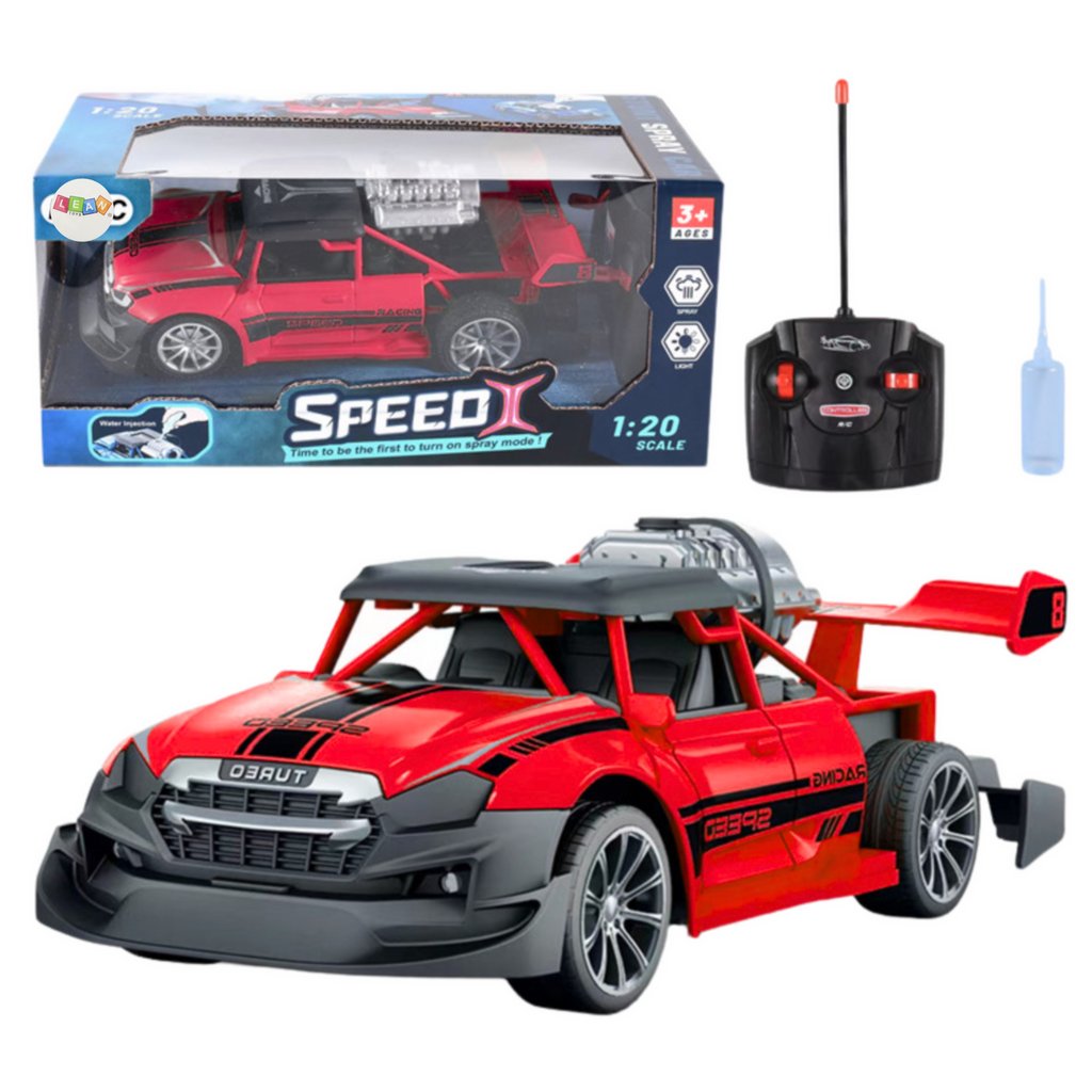 Zažijte vzrušení z vysokorychlostní jízdy s RC Autíčkem 1:20 s Osvětlením a Kouřovým Efektem. Toto dálkově ovládané auto v působivé červené barvě kombinuje dynamický pohyb se světelnými efekty a jedinečnou funkcí vypouštění vodní páry, která přidává dramatičnosti každé jízdě.