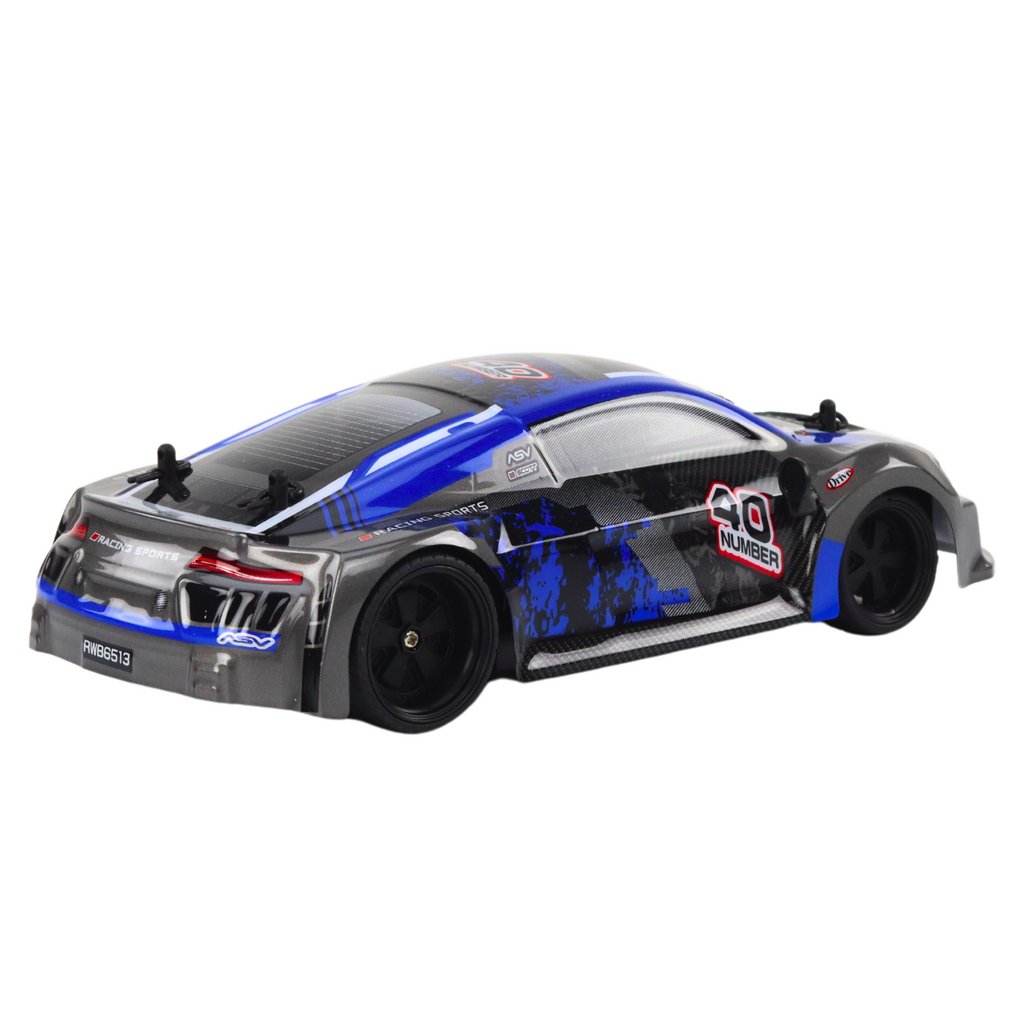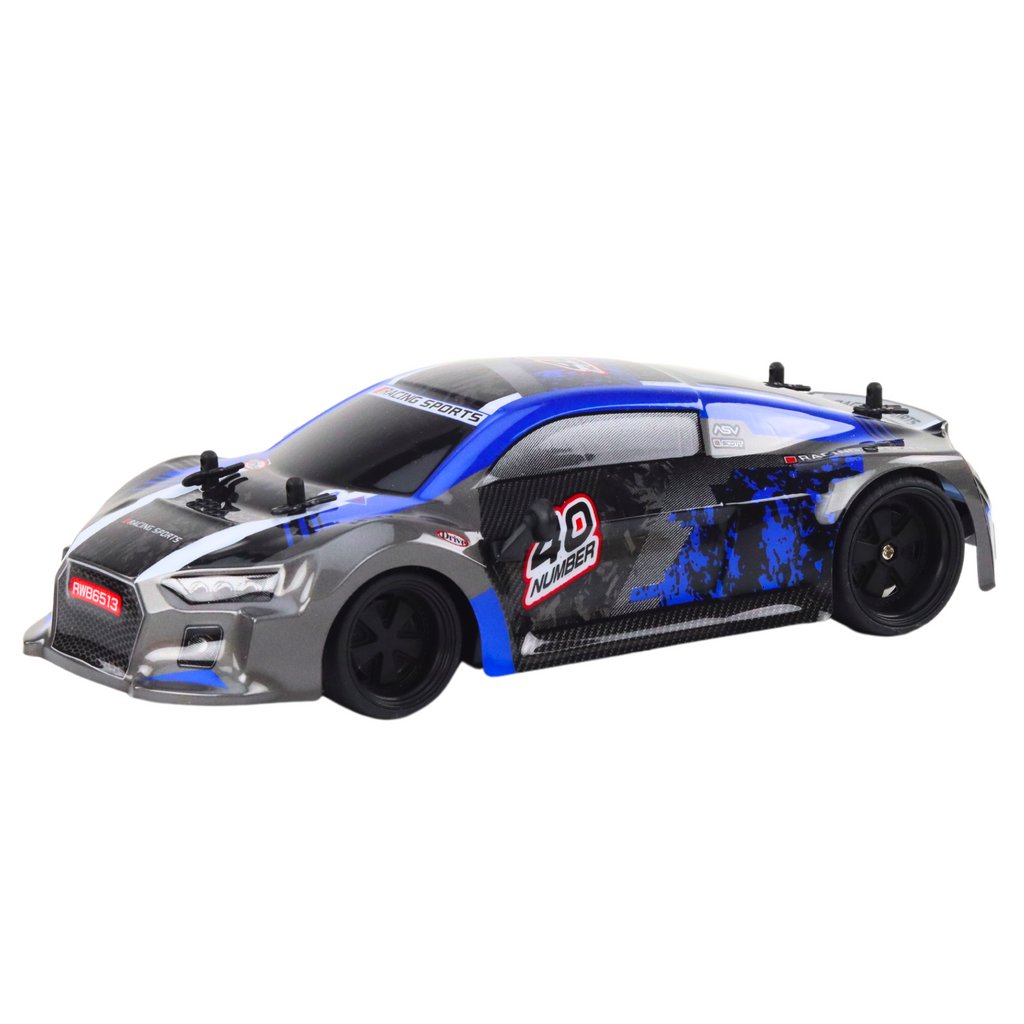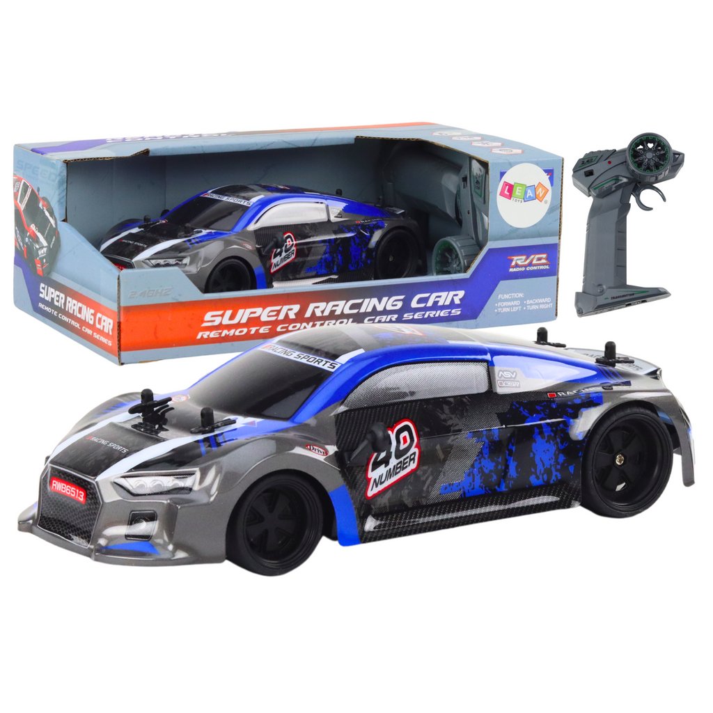 RC Auto s Dálkovým Ovládáním 1:18 Gumová Kola Drift Modrá je skvělou volbou pro všechny milovníky vzrušující jízdy a dynamických manévrů Intenzivní modrá barva a sportovní silueta vozidla zajišťují, že model působí výjimečně efektivně