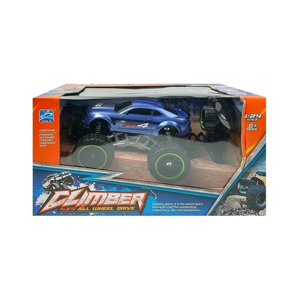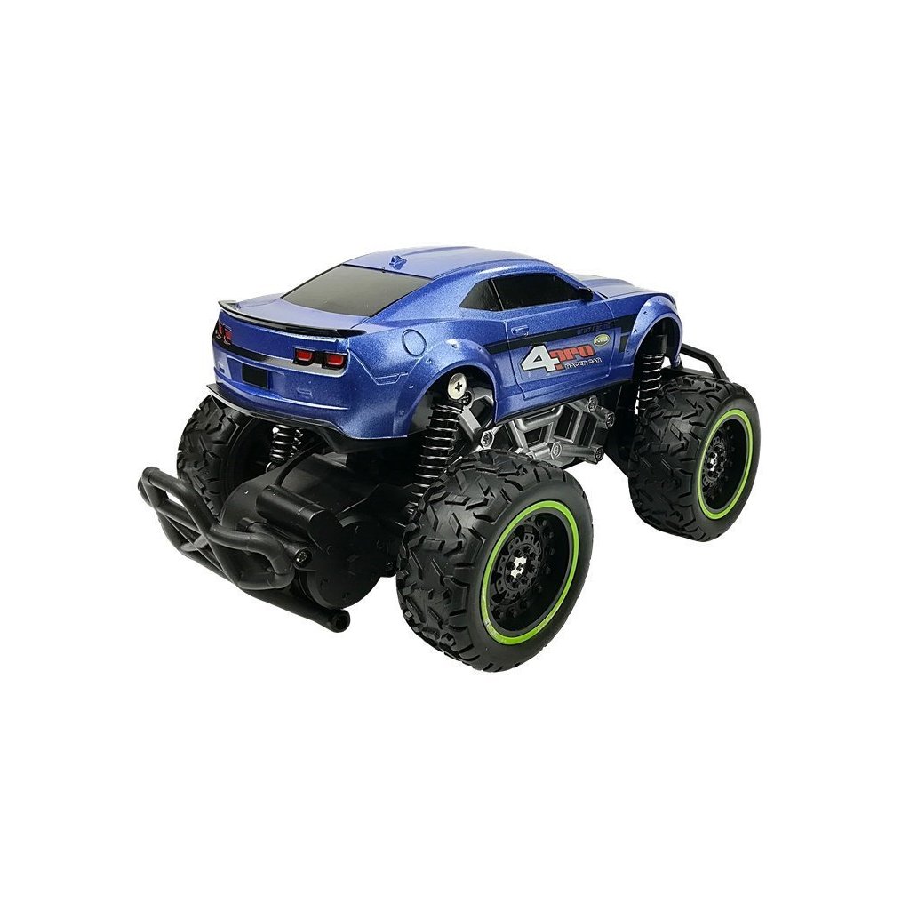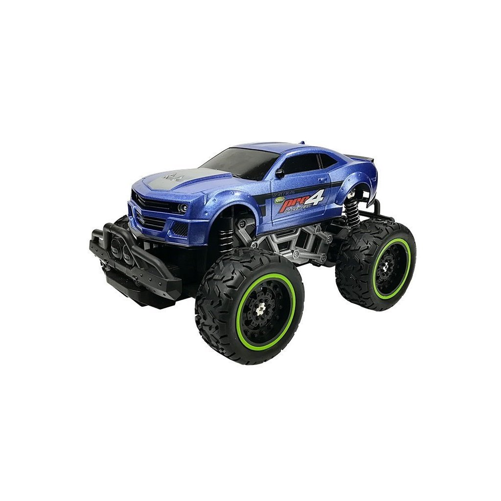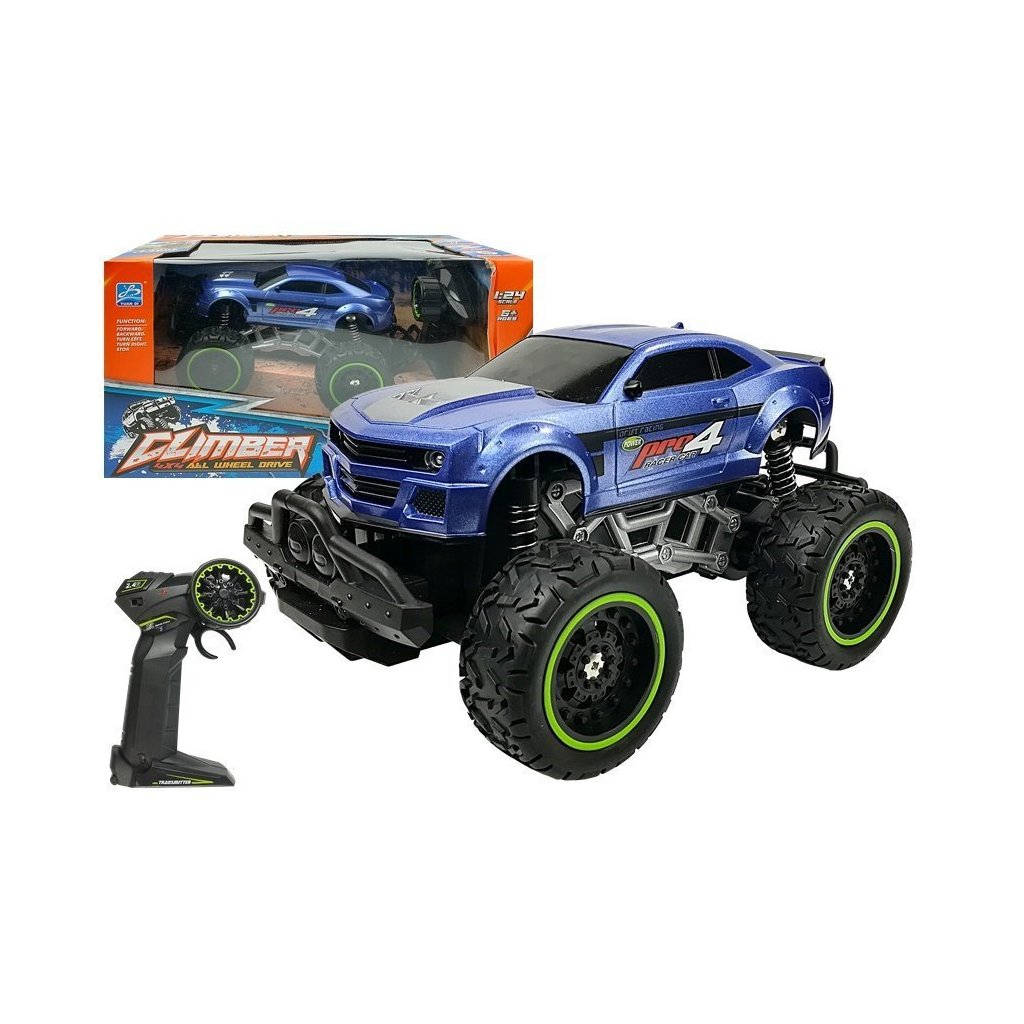 Auto na dálkové ovládání R/C s vysokými koly v modré barvě je terénní vozidlo, které překoná jakoukoliv překážku. Skvěle zvládne jízdu na asfaltu, nerovných kamenech i lesní půdě. Měkká gumová kola zajišťují vysokou přilnavost na různých površích, zatímco velké tlumiče umožňují projíždět náročnými překážkami. Tento model je vyhotoven v měřítku 1:24, což mu dodává neuvěřitelně realistický vzhled. Ovládání na dálku, které je součástí, napomáhá správnému rozvoji dovedností u dětí, jako je řízení hračkového auta, posílení koncentrace a rozvoj manuálních schopností. Velká kola a tlumiče, spolu s terénní konstrukcí, jsou jen některé z mnoha výhod tohoto auta. Sada obsahuje pohodlný a přesný kontroler. Pokud jste někdy ovládali profesionální auto, víte, že tento typ ovladače umožňuje maximální požitek z jízdy. Bezdrátový ovladač pracuje na frekvenci 2.4 GHz, což umožňuje závodění ve větší skupině bez rušení.
