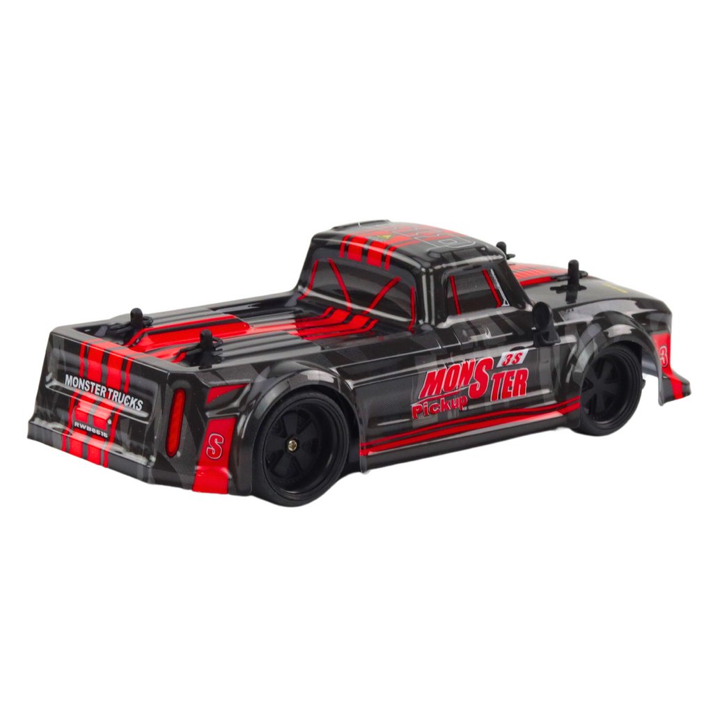 Zdalně ovládané auto typu pick-up RC 1:18 s gumovými pneumatikami, červené barvy Zážitky z dálkově ovládaného auta typu pick-up v měřítku 1:18 jsou ideální volbou pro nadšence dynamické a realistické zábavy Tento působivý model se vyznačuje elegantní černou barvou s červenými prvky, které mu dodávají sportovní charakter a vzhled