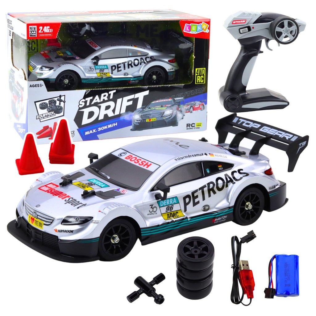 RC Závodní Drift Auto 1:16 ve Stříbrné barvě je dálkově ovládaná závodní hračka navržená pro děti a mládež, které se zajímají o motorismus Model v měřítku 1:16 vyniká realistickým vzhledem a funkcemi, které zajišťují maximální radost z jízdy