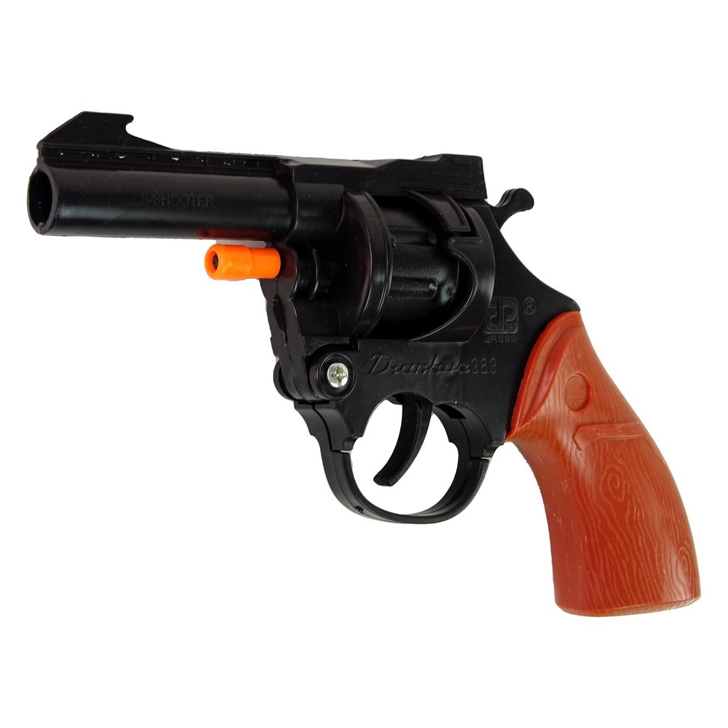 Revolver je poháněn kapslíky, které umožňují výstřel bez potřeby pravé munice. Díky tomu je pistole na kapslíky zcela bezpečná pro vaše dítě i okolí. Zbraň je snadná na ovládání, díky čemuž se vaše dítě rychle naučí, jak provést první hlučné výstřely. Plastový zásobník se otevírá pomocí oranžové páčky pod hlavní a uvnitř je místo pro 8 nábojů.