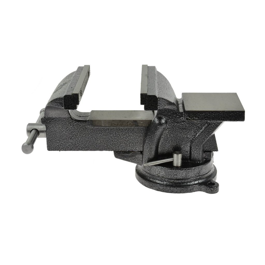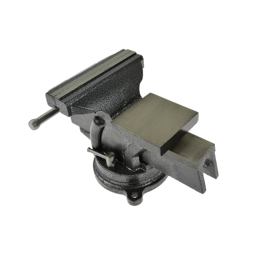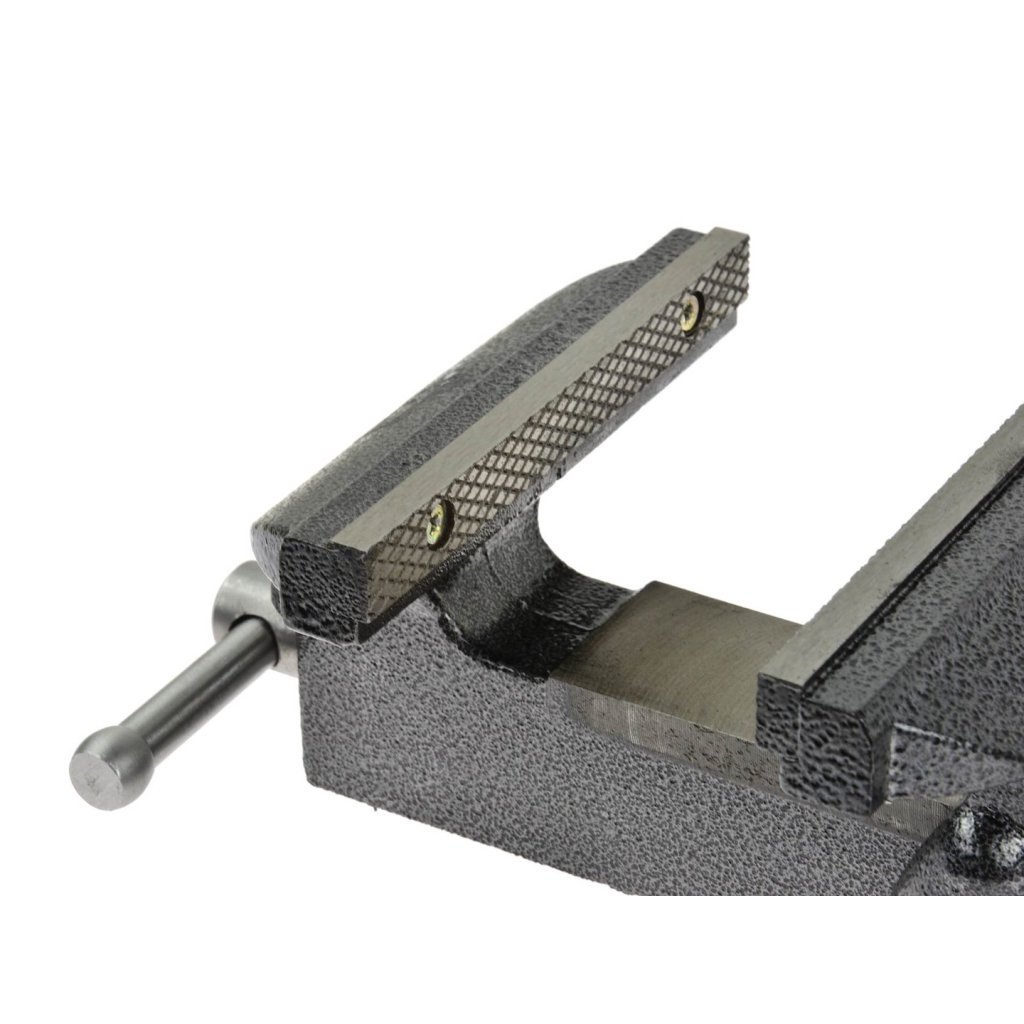 Otočné svěrák, vyrobený z vysoce kvalitních materiálů. Ocelové čelisti svěráku s protiskluzovými křížovými zářezy, navíc kalené. Odolná a pevná konstrukce umožňuje bezpečně upevnit vybraný předmět ve svěráku a zaručuje dlouhou životnost.