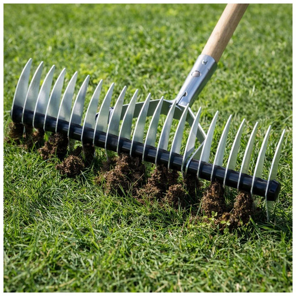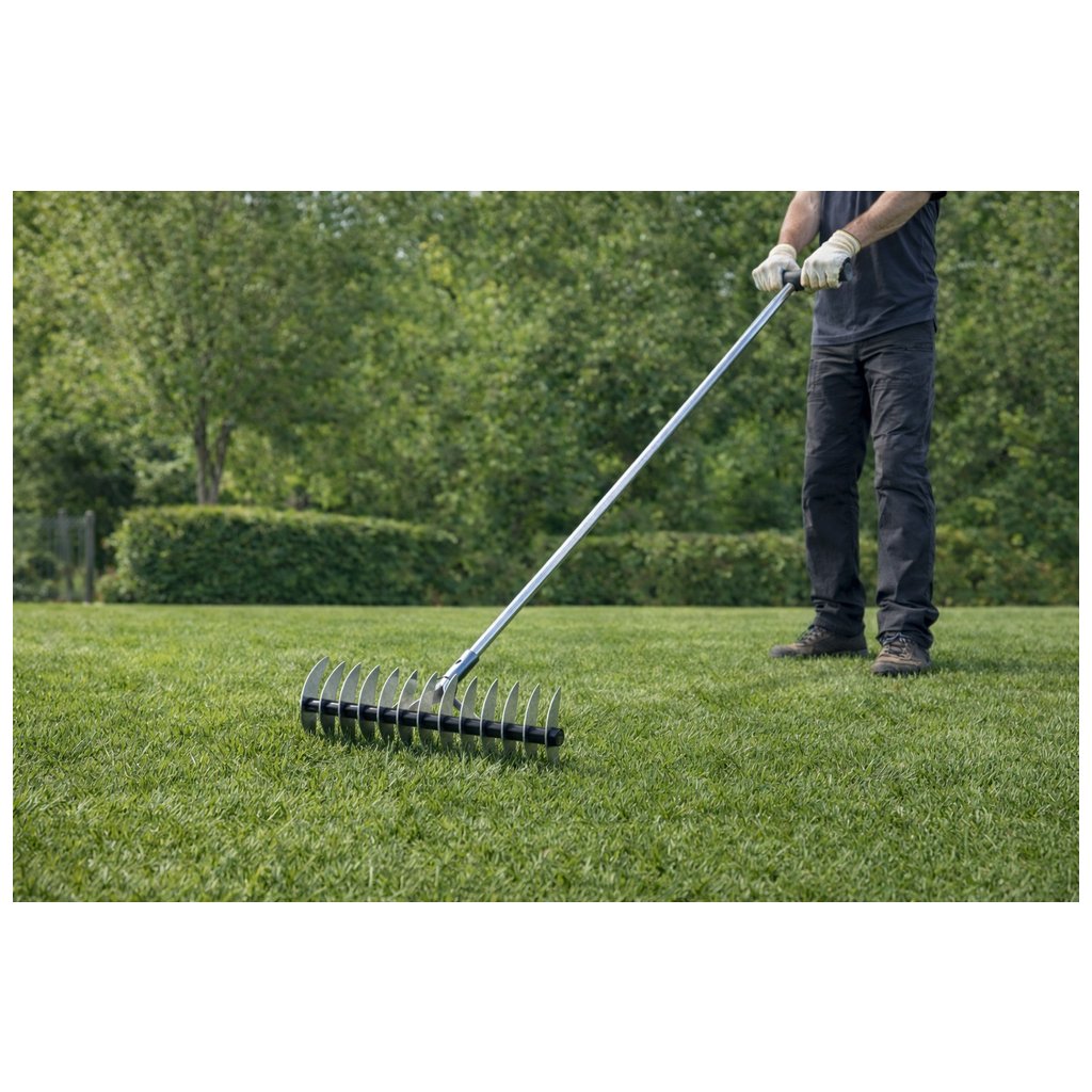 - Sefektivňuje přípravu půdy pro nové osivo a umožňuje prořídnutí příliš hustého trávníku
