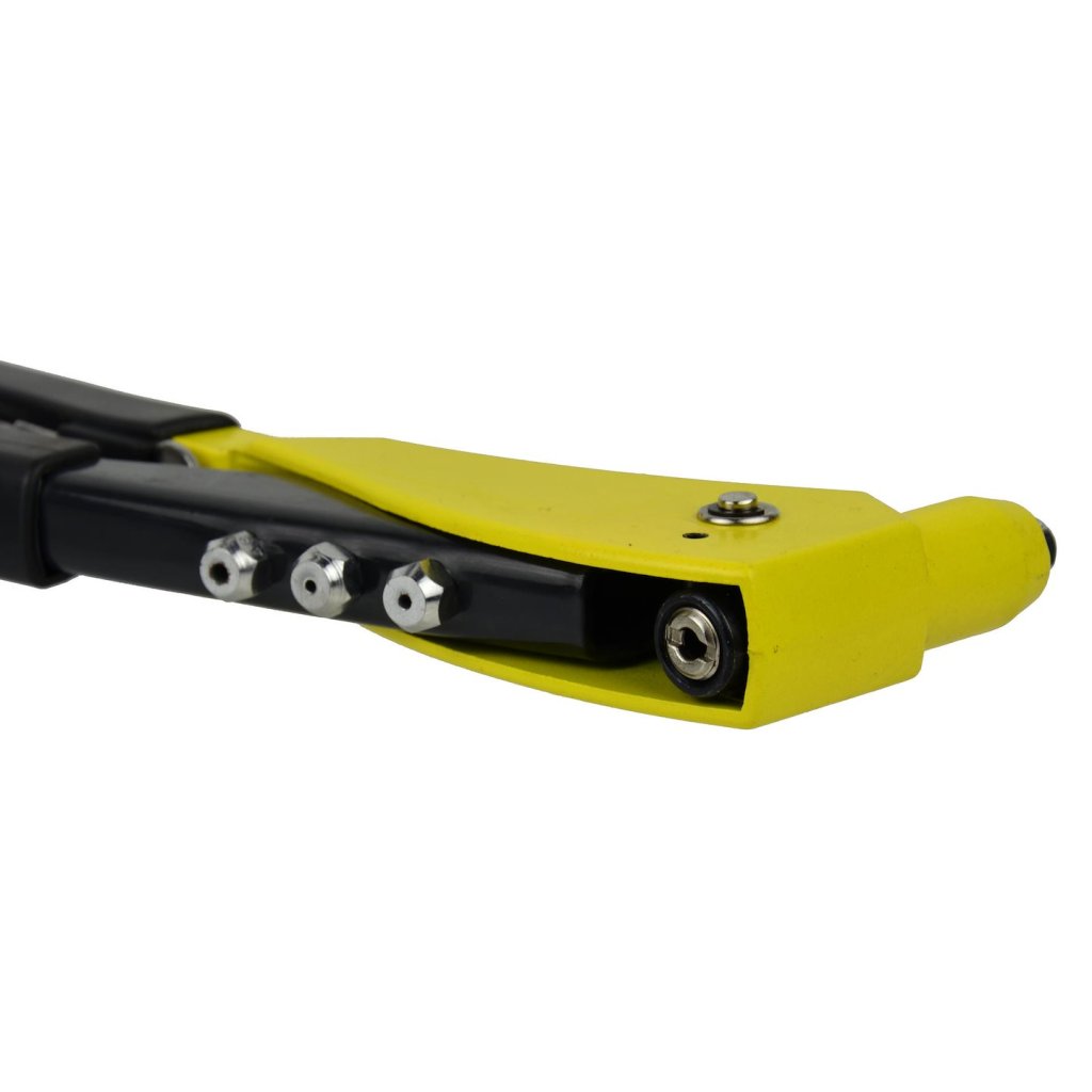 Robustní ruční nýtovačka vhodná pro hliníkové a měděné nýty o rozměrech 2,4/3,2/4,0/4,8 mm. Jedná se o nástroj, který se hodí prakticky do každé domácnosti a slouží ke spojování dvou materiálů, například plochých ocelových a hliníkových profilů, kůže, PVC, plechů a dalších materiálů. Nýtovačka je vybavena četnými zesílenými prvky, které zajišťují delší životnost, a ergonomická pogumovaná rukojeť zajišťuje jistý a pohodlný úchop. Sada obsahuje 4 vyměnitelné koncovky o rozměrech: 2,4 / 3,2 / 4,0 / 4,8 mm. K nýtovačce je přiložen klíč pro výměnu koncovek.