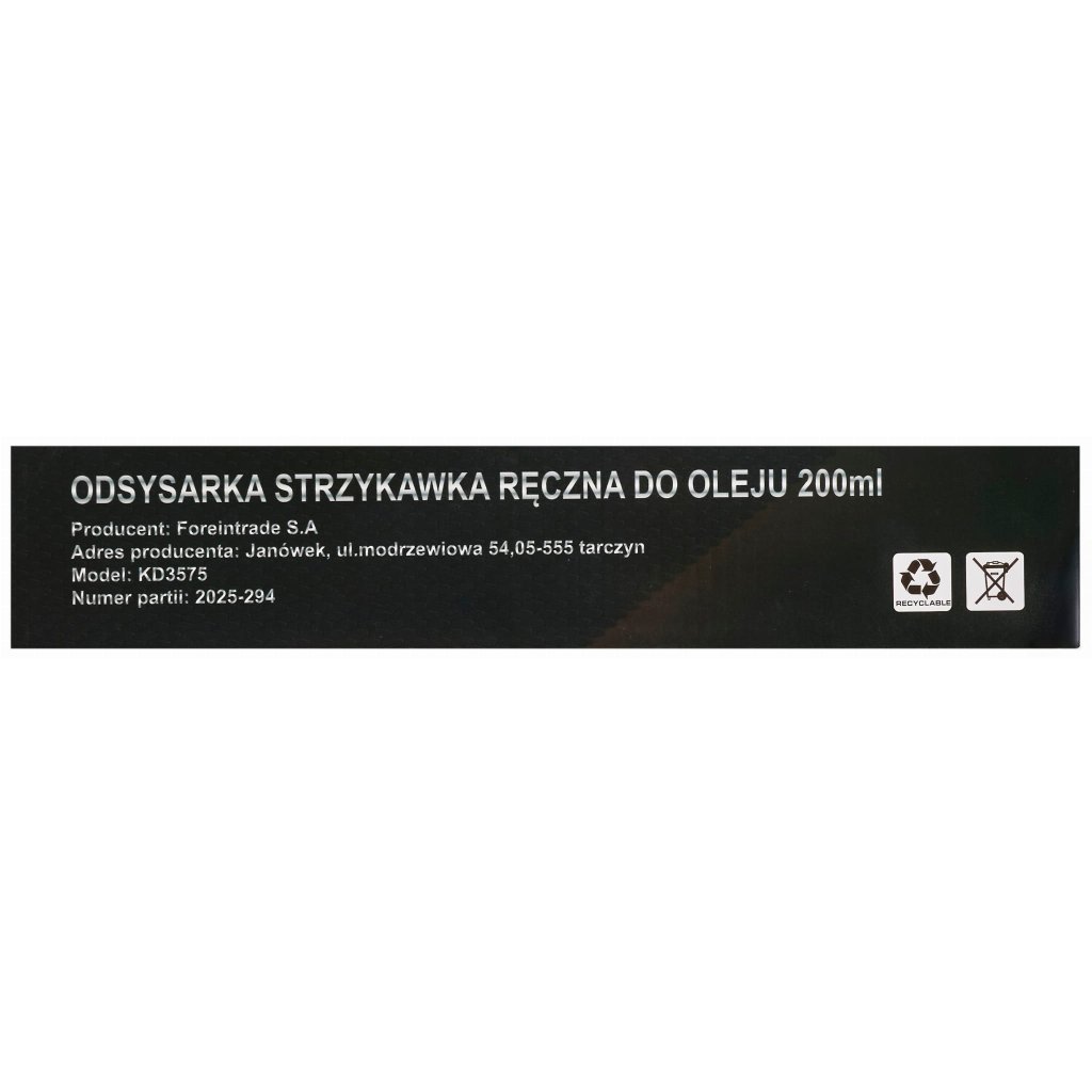 - Typ obsługiwanych cieczy Olej, płyny hydrauliczne, inne ciecze techniczne ✅ Obsah balení: ✅ Odsysarka ręczna o pojemności 200 ml ✅ Przewód elastyczny ✅ Opakowanie z tworzywa sztucznego ✅ Záruka 12 miesięcy