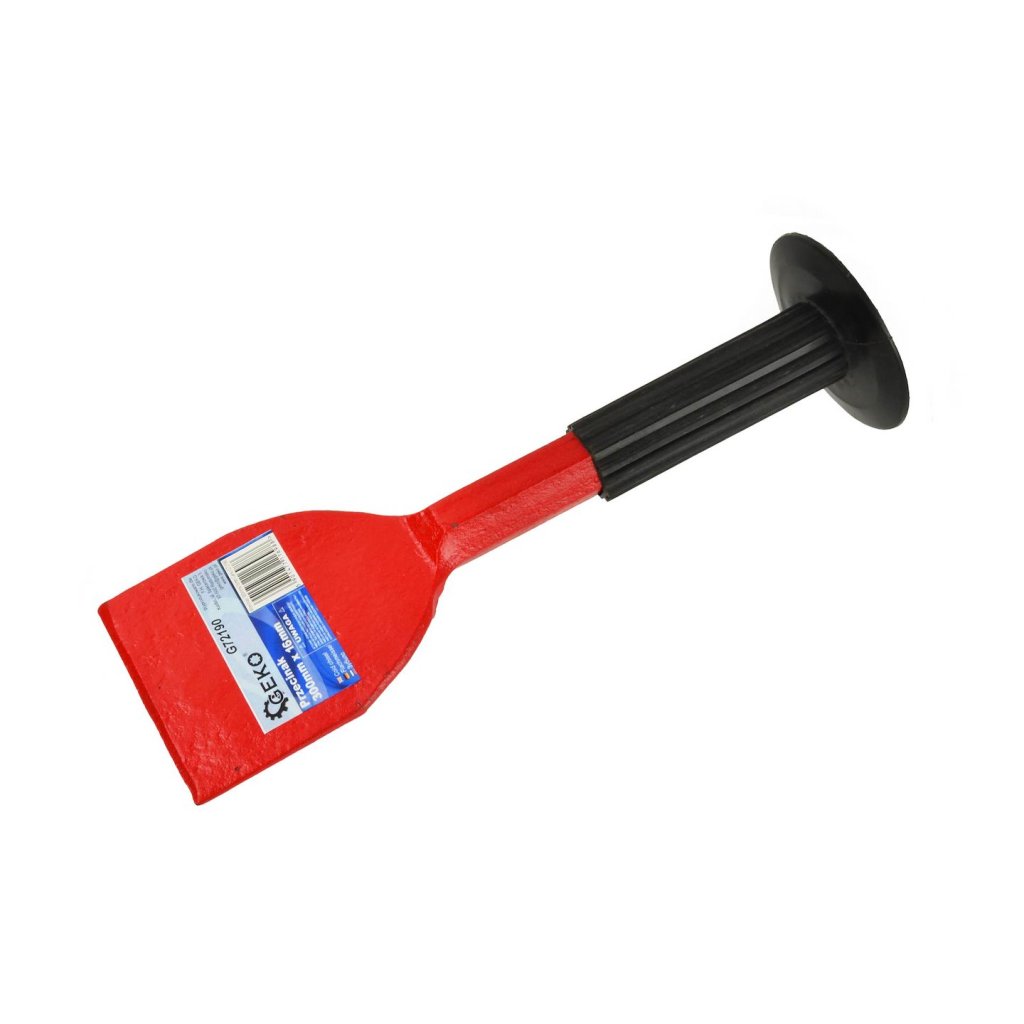 Sekáč používaný ve stavebnictví k řezání a opracování stavebních materiálů. Má gumový kryt chránící ruku před úderem kladivem.