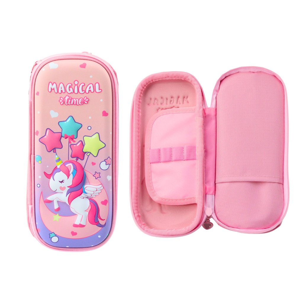 Růžový 3D penál s jednorožcem je ideální volbou pro mladé milovnice těchto tvorů, které chtějí skloubit funkčnost s roztomilým designem Vyrobený z vysoce kvalitního zpevněného materiálu, který zajišťuje dlouhodobé používání i při intenzivním školním využití