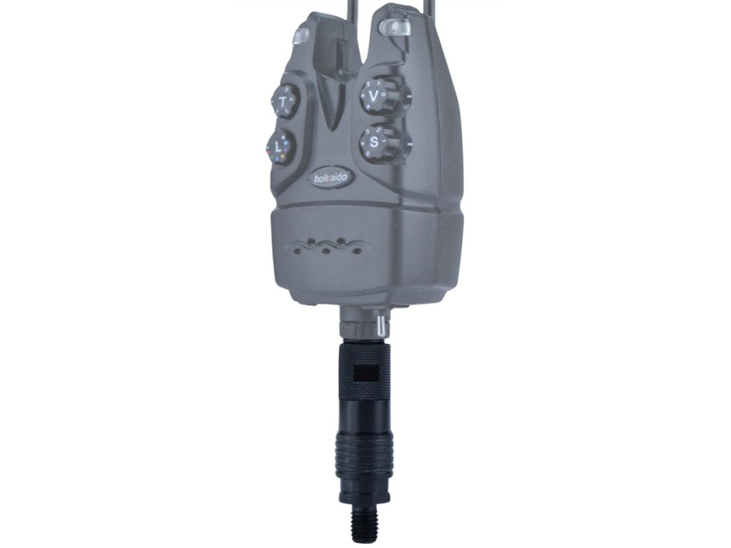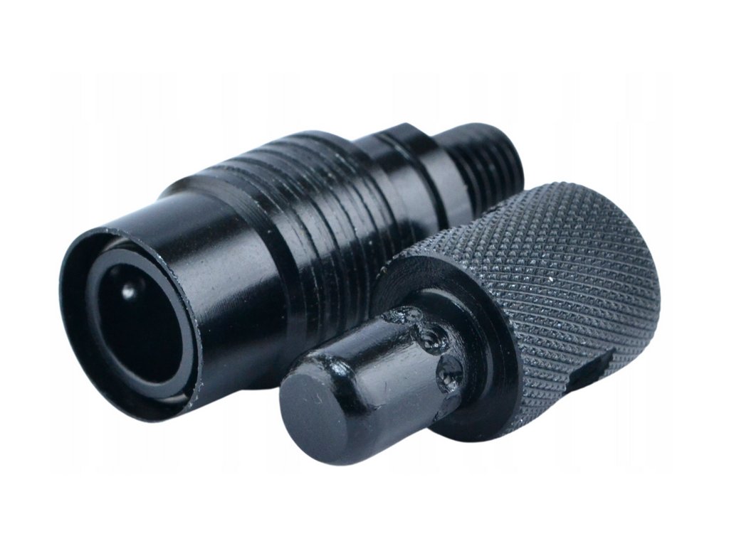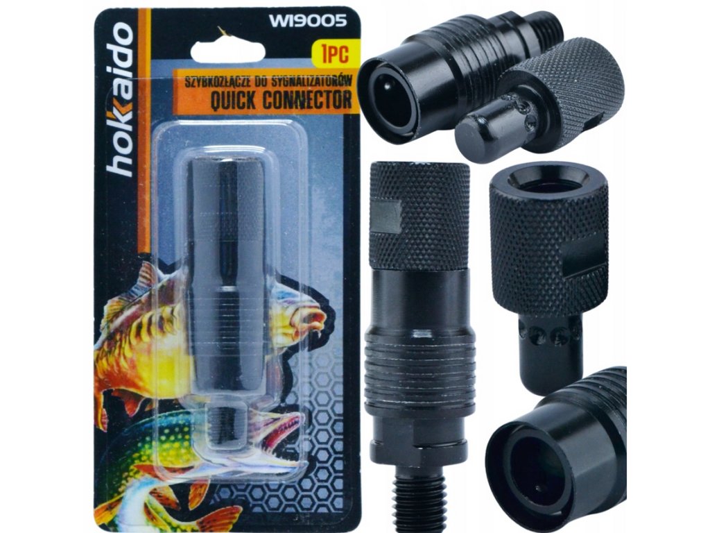 Lehká a odolná rychlospojka z hliníku pro rychlou výměnu signalizátoru, podpěry, podběráku. Kuličkový zámek pro bezpečné spojení a standardní závit ~9 mm pro širokou kompatibilitu. Model W19005, černé provedení.