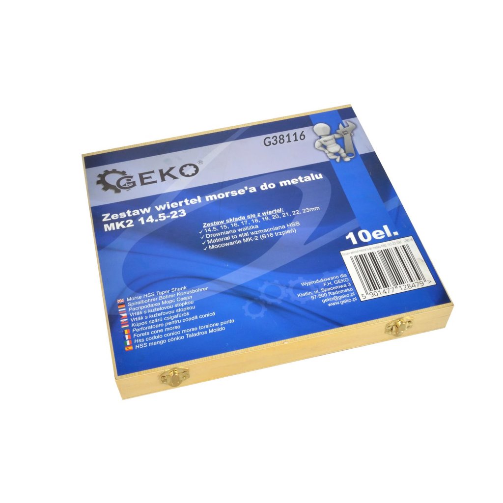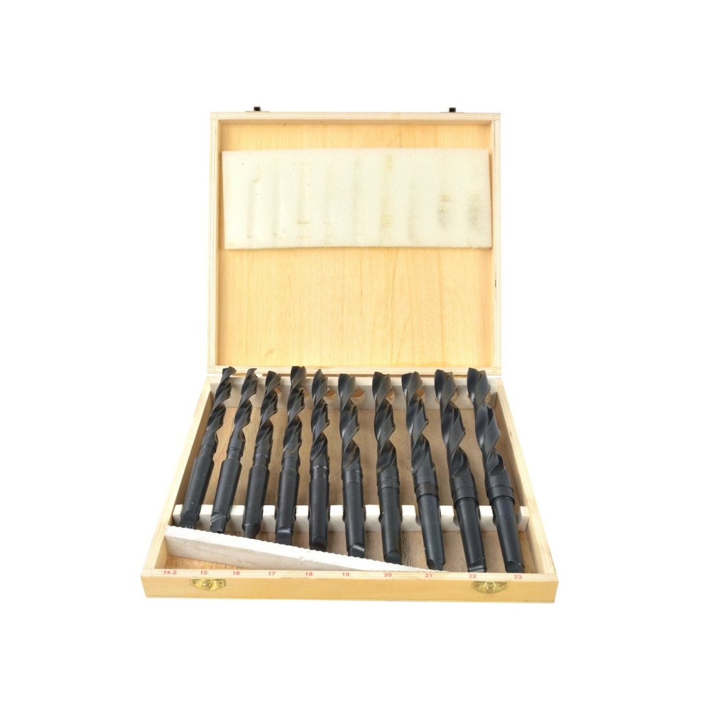 - Sada obsahuje vrtáky 14,5, 15, 16, 17, 18, 19, 20, 21, 22, 23 mm.