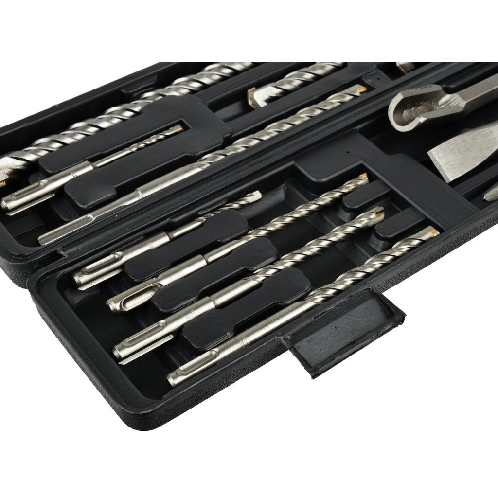Sada vrtáků a sekáčů SDS Plus renomované značky GEKO. Vrtáky a sekáče jsou vyrobeny z vysoce kvalitní oceli. Speciálně tvarovaná karbidová vložka zajišťuje dlouhou životnost, vysoký výkon a vysokou přesnost vrtání. Navíc toto řešení snižuje zatížení přenášené na vrtačku.