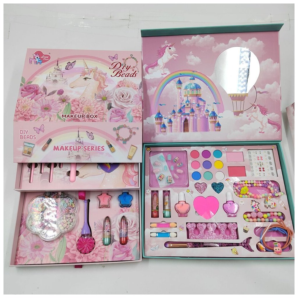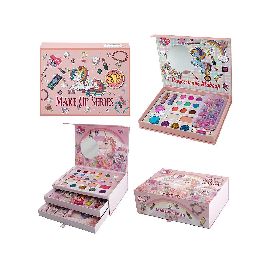 - Set na make-up, což je opravdový poklad pro malé milovnice kosmetiky. Obsahuje dvě rtěnky, osmnáct různých očních stínů, čtyři tvářenky, pět třpytivých očních stínů, tři štětce na líčení, lesk na rty, aplikátor na stíny a oboustranný kartáček na obočí. Děti mohou experimentovat s make-upem a vytvářet různé styly.