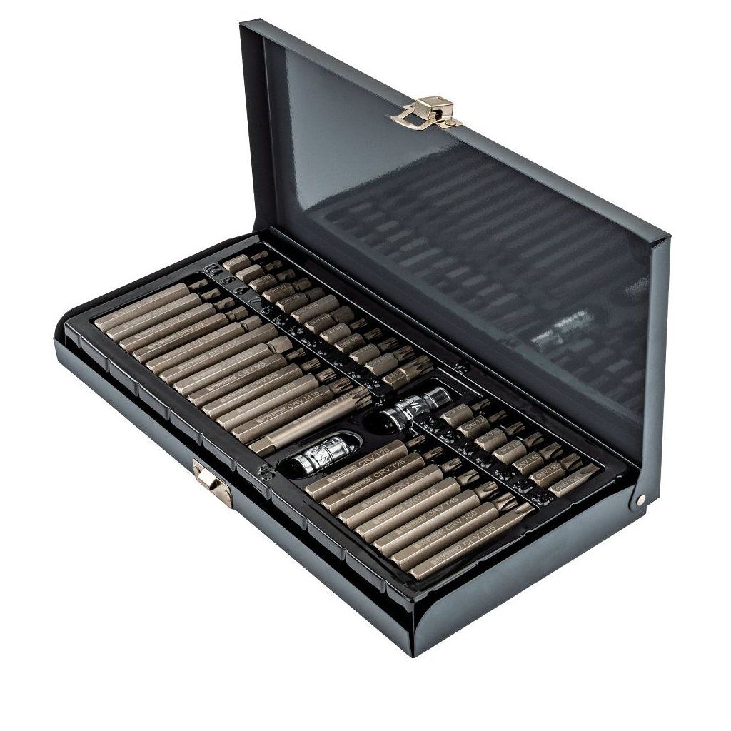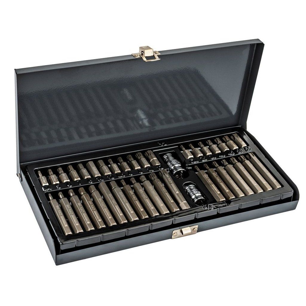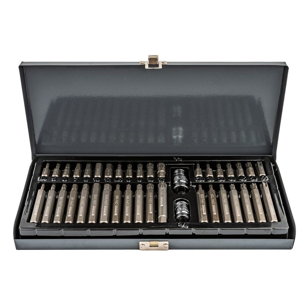 Univerzální sada bitů pro profesionální i domácí použití. Set obsahuje 40 kvalitních rázových bitů ve třech nejpoužívanějších profilech. Díky dvěma délkám a přiloženým adaptérům je kompatibilní s ráčnami, nástrčnými klíči i rázovými utahováky.