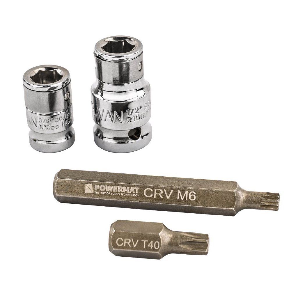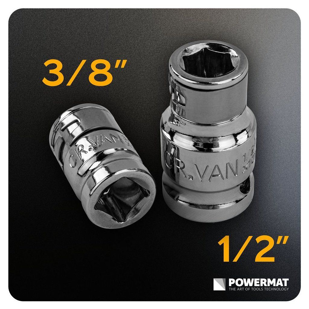 - Adaptéry 1/2" a 3/8" – univerzální kompatibilita.