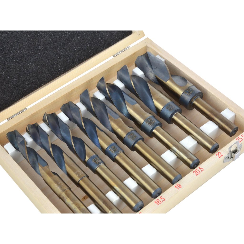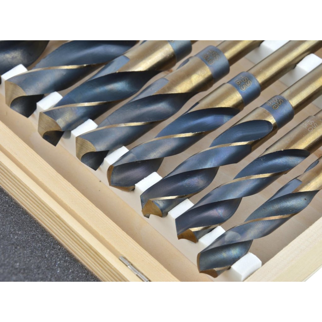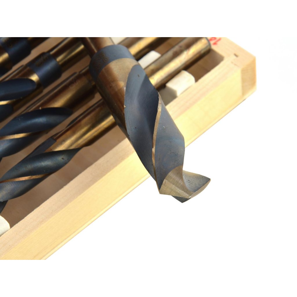 Sada spirálových vrtáků NWKa s válcovým úchytem. Sada obsahuje vrtáky o velikostech 14, 15, 16, 16,5, 19, 20,5, 22, 25,5 mm.
