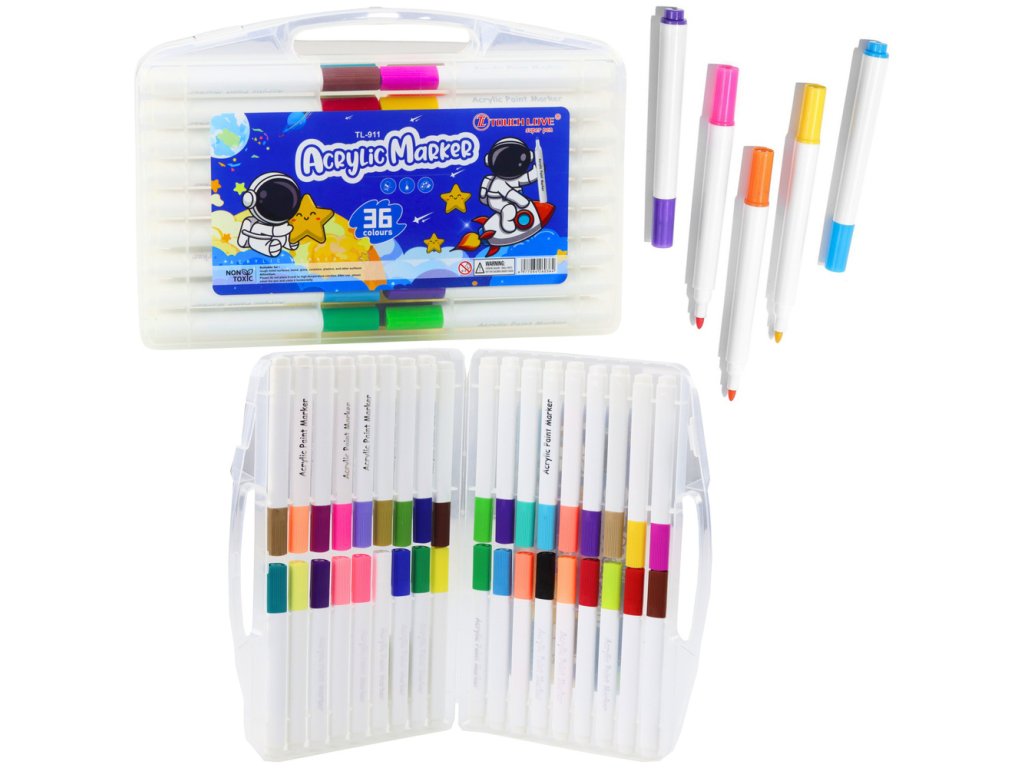 Sada akrylových fixů je ideálním nástrojem pro každého mladého umělce a milovníka umění. Vysoce kvalitní fixy v 36 intenzivních barvách umožňují vytvářet jedinečné umělecké a dekorativní projekty. Díky akrylovému složení inkoustu jsou barvy odolné vůči vyblednutí a otěru, a navíc skvěle kryjí různé povrchy, jako je papír, karton, dřevo, plast a sklo. Jejich výjimečná pigmentace zajišťuje, že každý kresba bude výrazná a plná barev, což z nich činí ideální nástroj jak pro každodenní skicování, tak i profesionální umělecké práce.