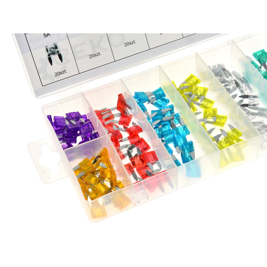 Obsah balení 20x pojistka 3 AMP 20x pojistka 5 AMP 20x pojistka 10 AMP 20x pojistka 15 AMP 20x pojistka 20 AMP 20x pojistka 25 AMP 20x pojistka 30 AMP