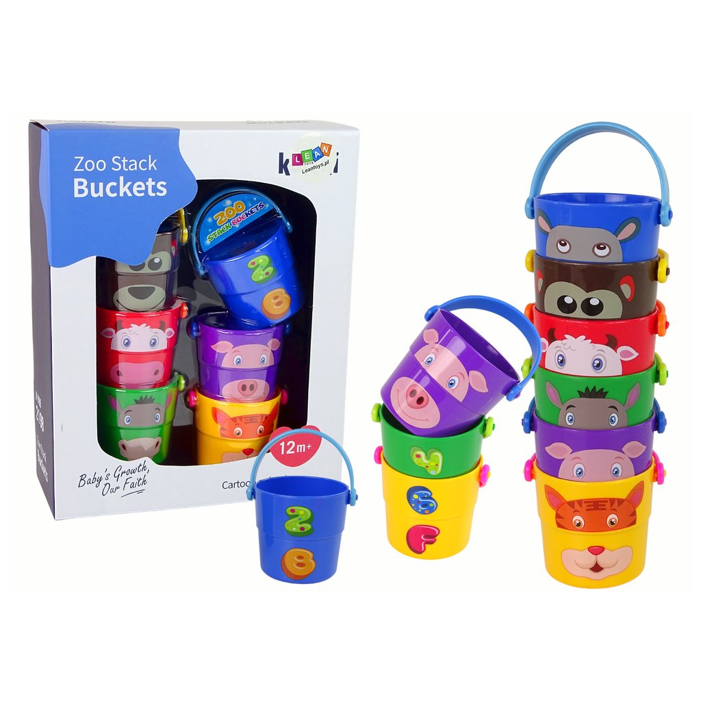 - Tato unikátní sada nabízí šest veselých kbelíků představujících různá zvířátka, jako je medvídek, tygr či kráva, což otevírá dětem okno do světa zvířat