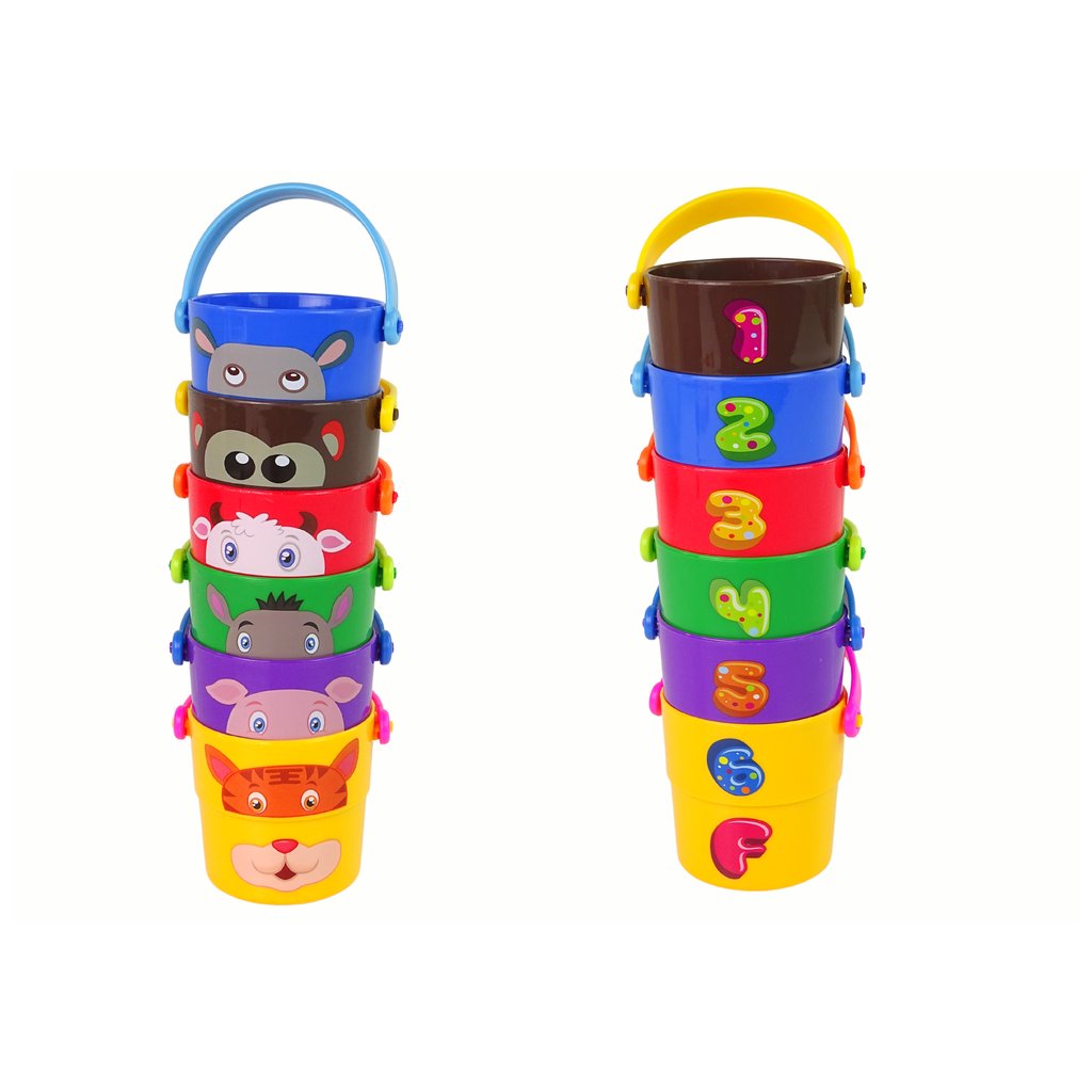- Sada barevných kbelíků se zvířátky a pyramidou Barevná kbelíky jsou ideální hračka do vany pro nejmenší děti