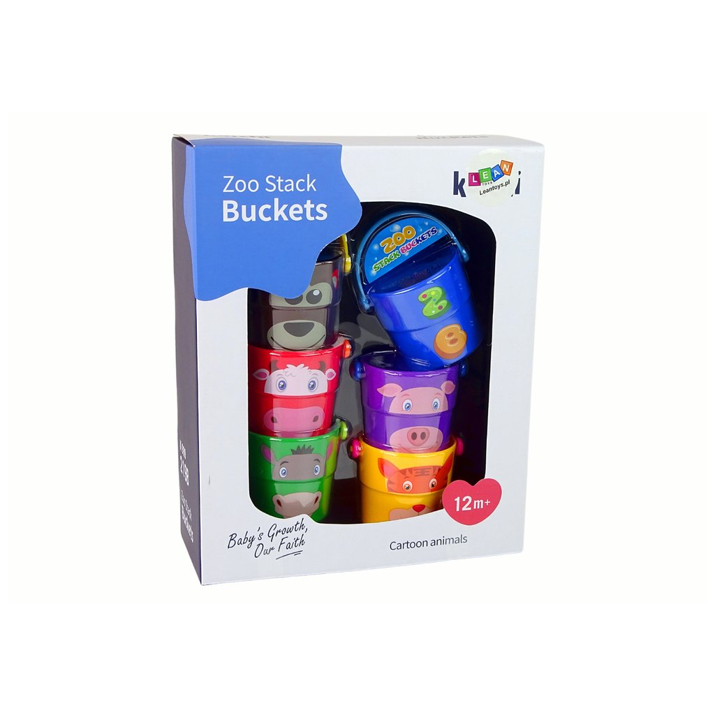 - Sada 6 kbelíků zobrazuje zvířátka, například medvídka, tygra nebo krávu, a děti se tak mohou seznámit s různými druhy zvířat