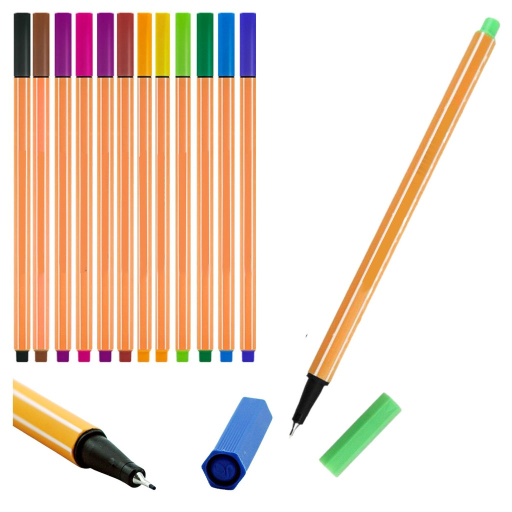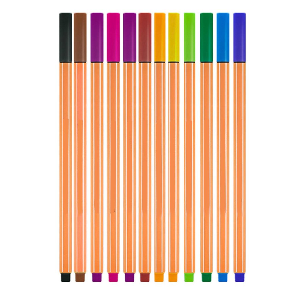 Cienkopisy školní a kancelářské sada 12 kusů, tloušťka čáry 0,4 mm