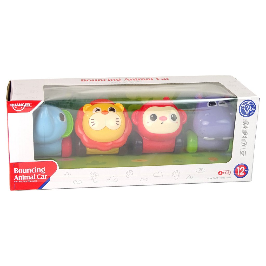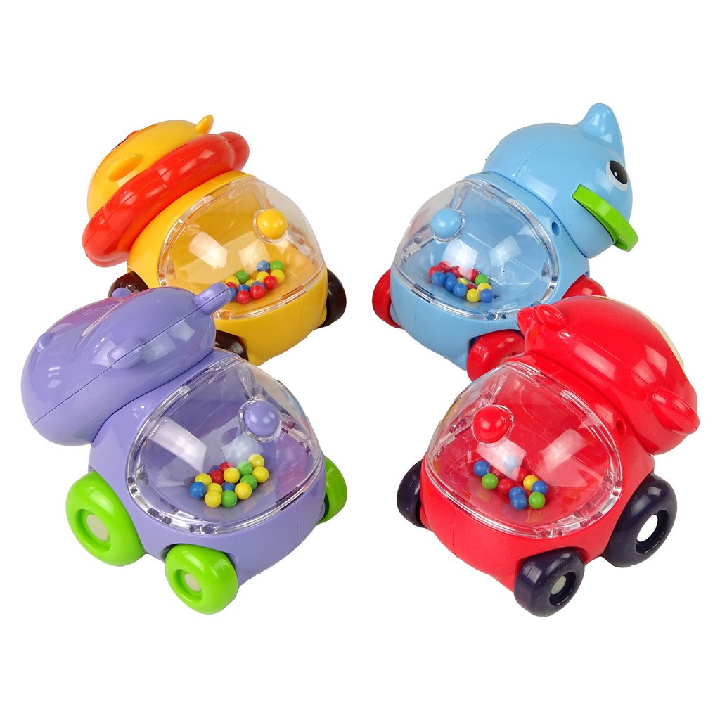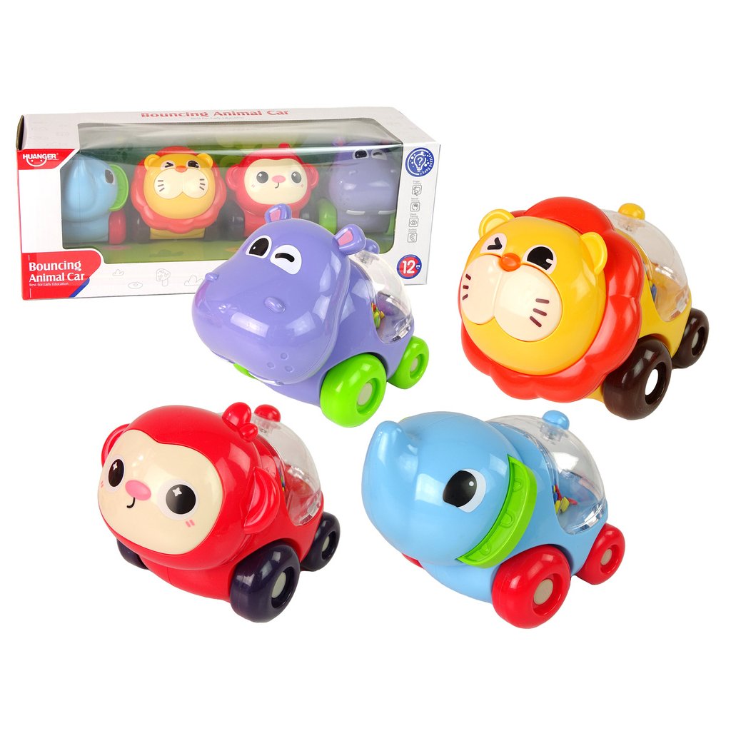 Sada barevných vozidel Zvířata s kuličkami Sada barevných vozidel s barevnými kuličkami uvnitř je skvělou volbou pro malé objevitele, kteří milují výzvy a obratnostní hry Sada se skládá ze čtyř barevných vozidel ve tvaru zvířátek, včetně hrocha, lva, slona a opičky